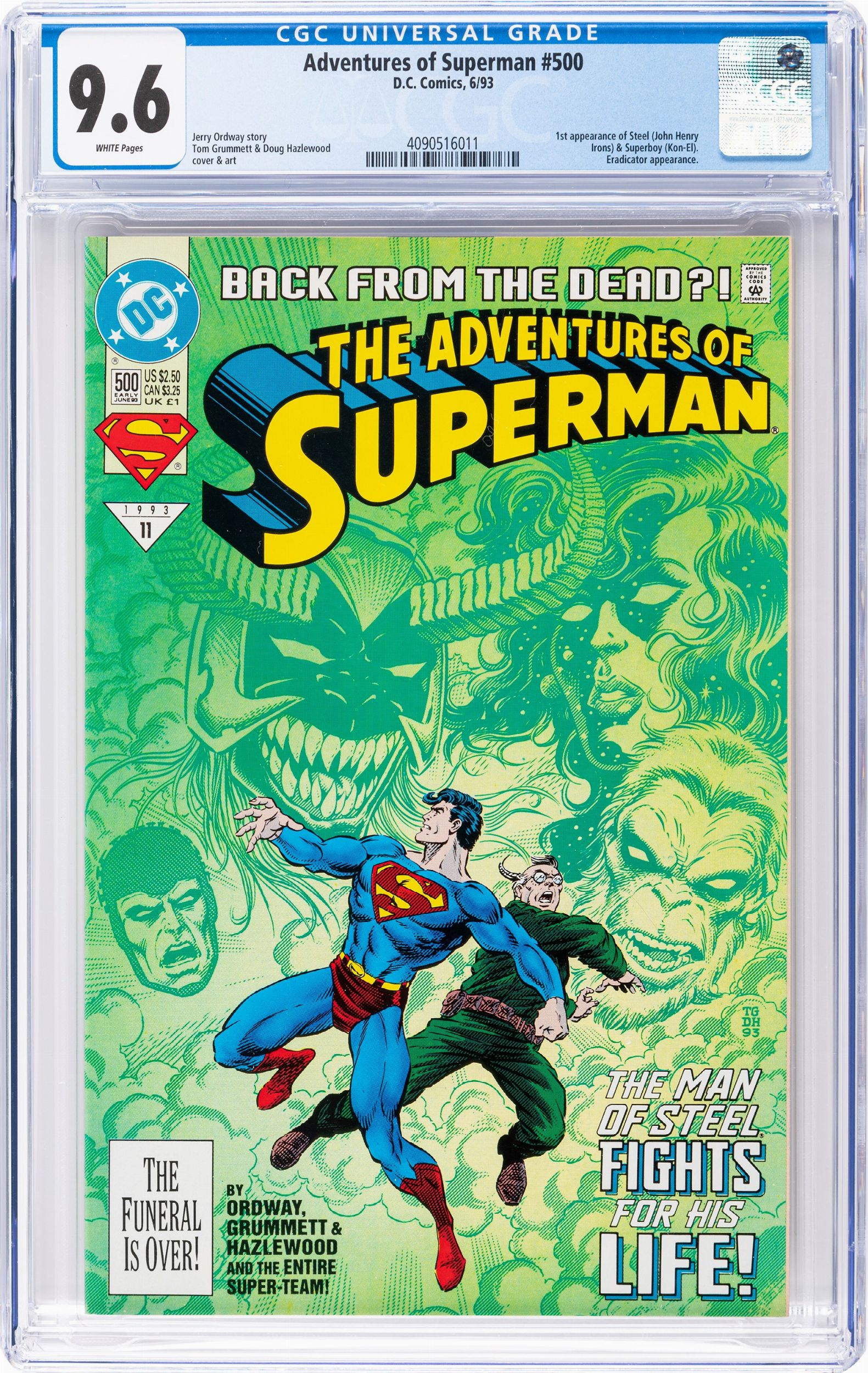 Page Quality: WHITE, Grade: 9.6 1993 Comic book certificato dalla CGC con un grading 9.6 (CGC Cert # 4090516011), case sigillato e in ottime condizioni. CGC Comments: 1st appearance of Steel (John Henry Irons) & Superboy (Kon-El). Eradicator appearance.