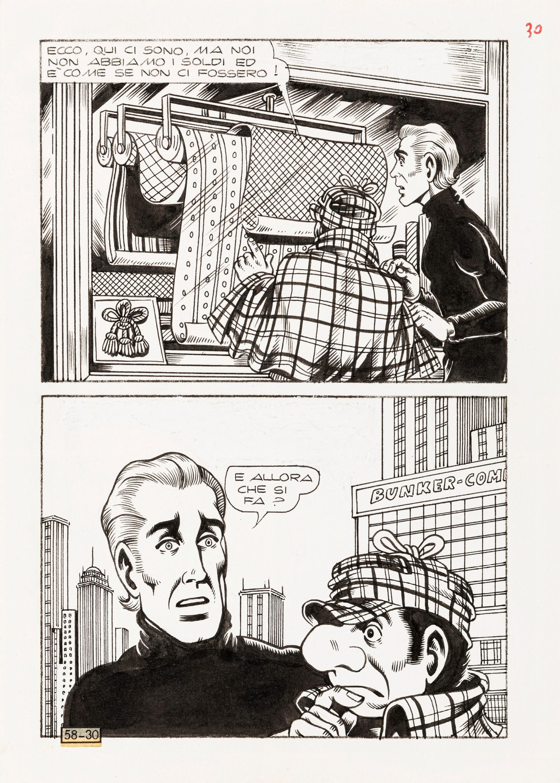 1974 Tavola originale realizzata da Magnus per Un tuffo nel vuoto, edita su Alan Ford n. 58 a pag. 30 dall´Editoriale Corno nel 1974.