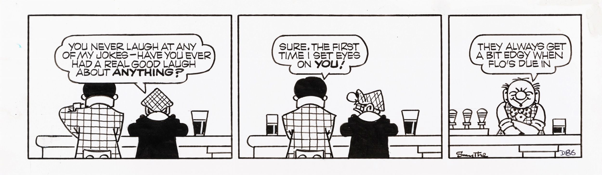 1995 Striscia giornaliera n. D 86 del 1995 per Andy Capp, realizzata da Smythe per le pagine del The Daily Mirror. Firmata e numerata.