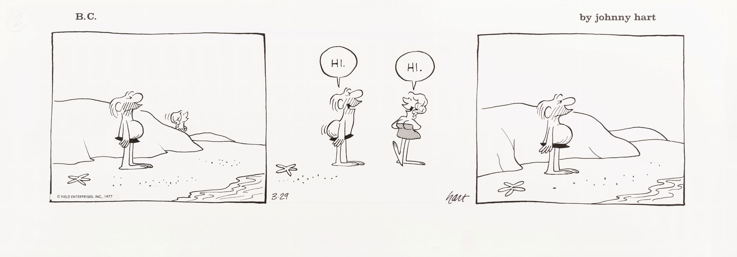 29/03/1977 Striscia giornaliera del 29/03/1977 per B.C.. Firmata e datata.
