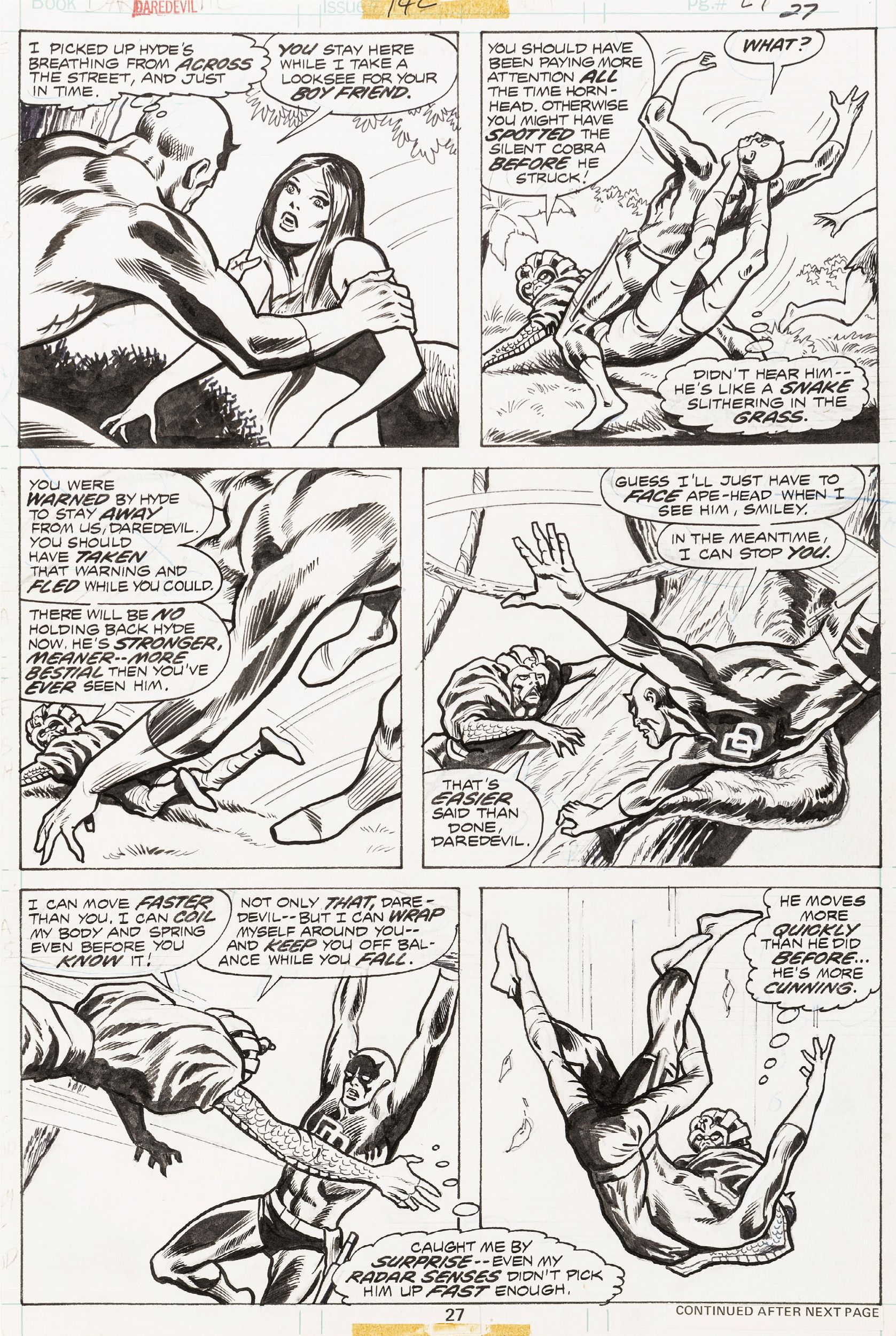 1977 Tavola originale realizzata da Brown per The Concrete Jungle!, edita su Daredevil n. 142 a pag. 27 dalla Marvel nel 1977.