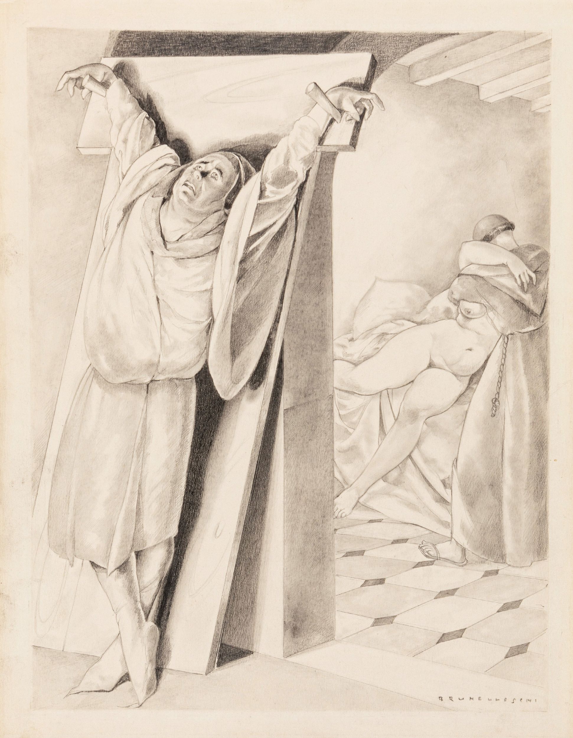 1934 Illustrazione originale realizzata da Brunelleschi per Les contes de Boccace: Decameron edito in Francia da Gibert Jeune nel 1934. Firmata.