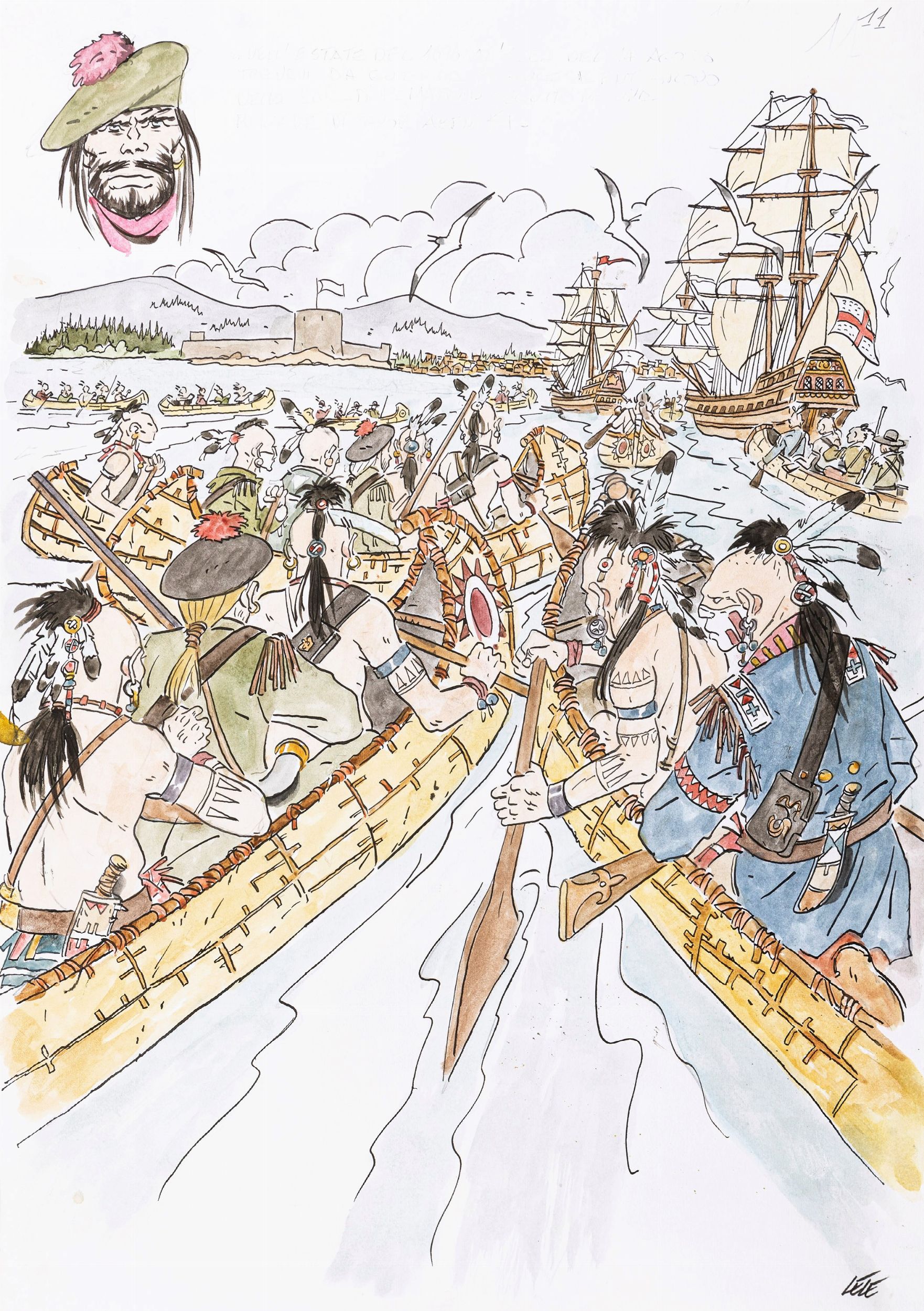 2021 Illustrazione originale realizzata da Vianello per l'edizione deluxe del suo celebre Deerfield 1704, edita dalle Edizioni Segni d'Autore nel 2021. Firmata al fronte e al retro.