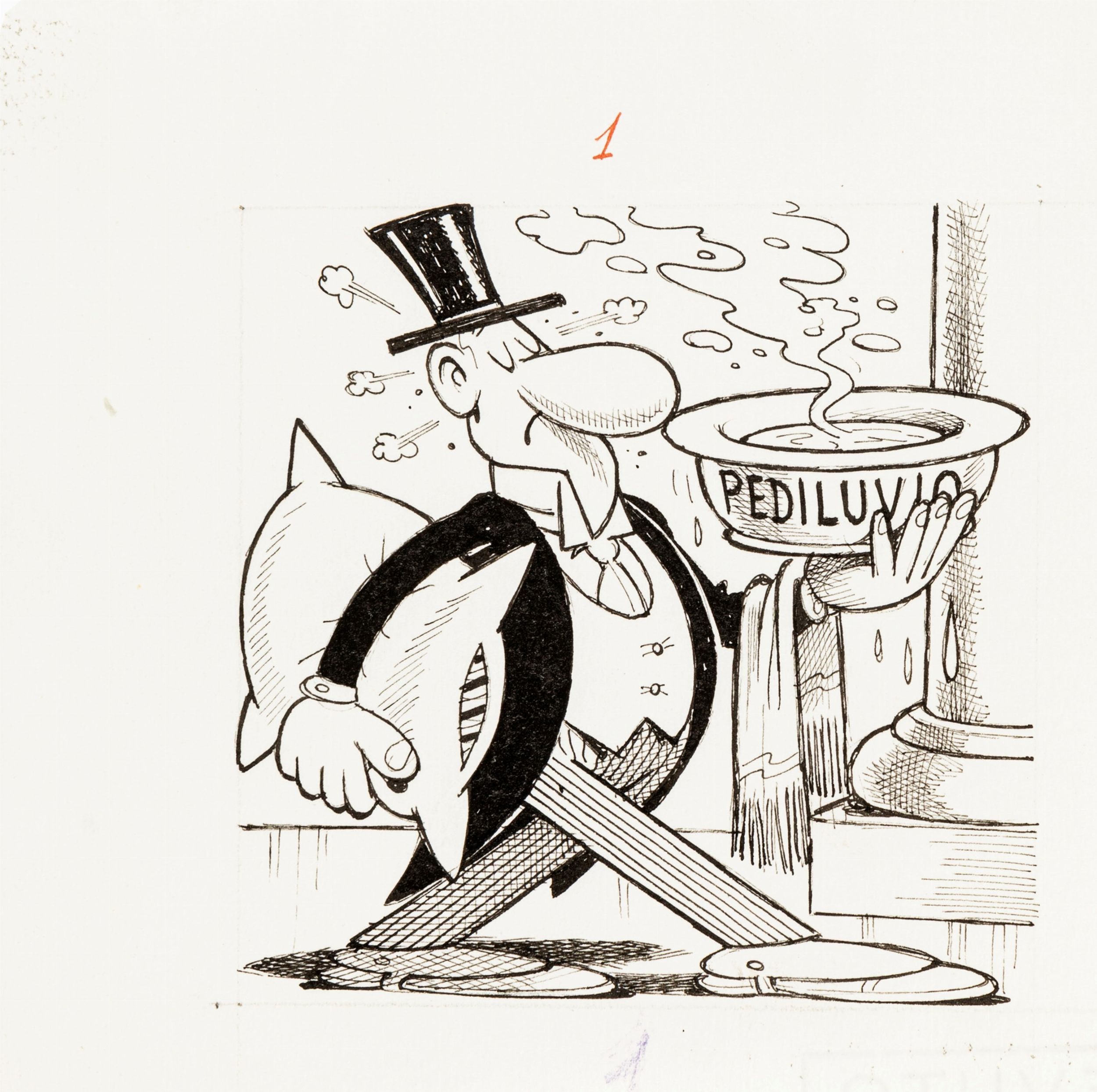 Benito Jacovitti : Diario Vitt - Konrad Adenauer, statista tedesco  - Asta Fumetti: Tavole e Illustrazioni Originali - Associazione Nazionale - Case d'Asta italiane