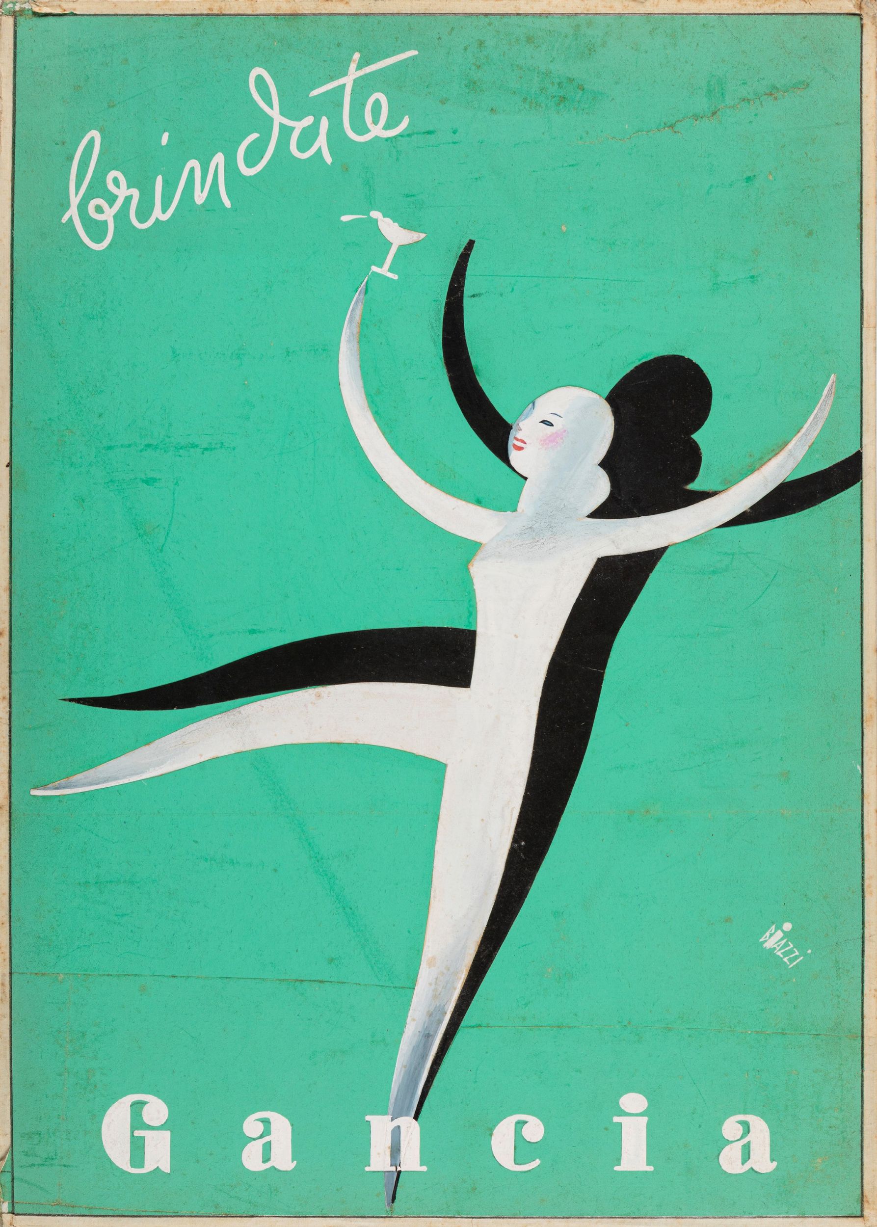 anni '30 Illustrazione originale realizzata da Biazzi durante gli anni '30 per il celebre marchio vinicolo. Firmata.