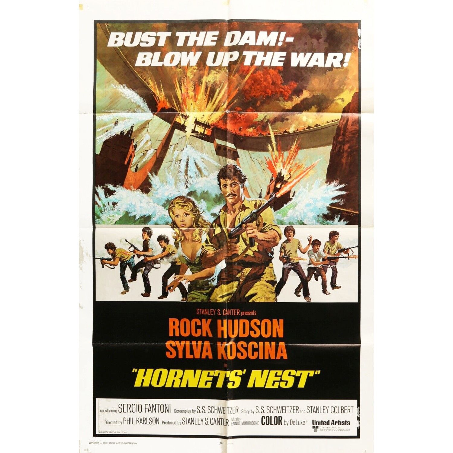 1970 Bozzetto originale realizzato da Thurston per la locandina ufficiale del film I lupi attaccano in branco, diretto da Phil Karlson e Franco Cirino con Rock Hudson, Sylva Koscina e Sergio Fantoni nel 1970. Firmato.