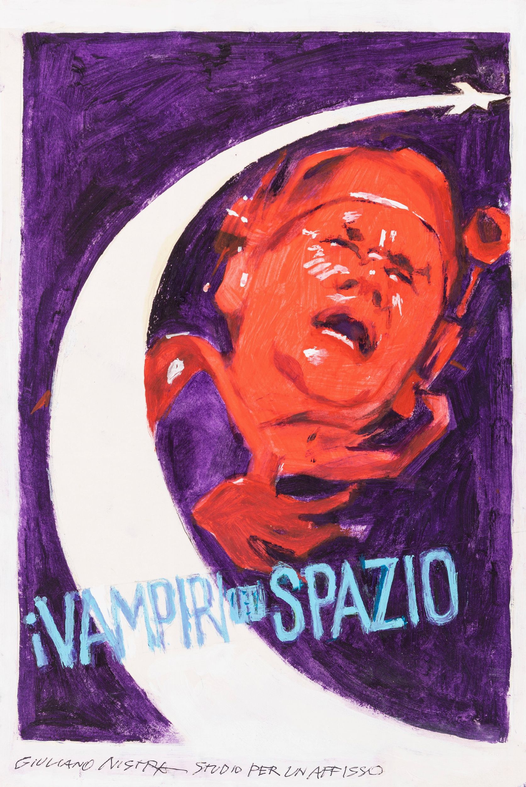 1957 Bozzetto preliminare realizzato da Giuliano Nistri per la locandina ufficiale del film I vampiri dello spazio, diretto da Val Guest con Brian Donlevy, John Longden e Vera Day nel 1957. Firmato.