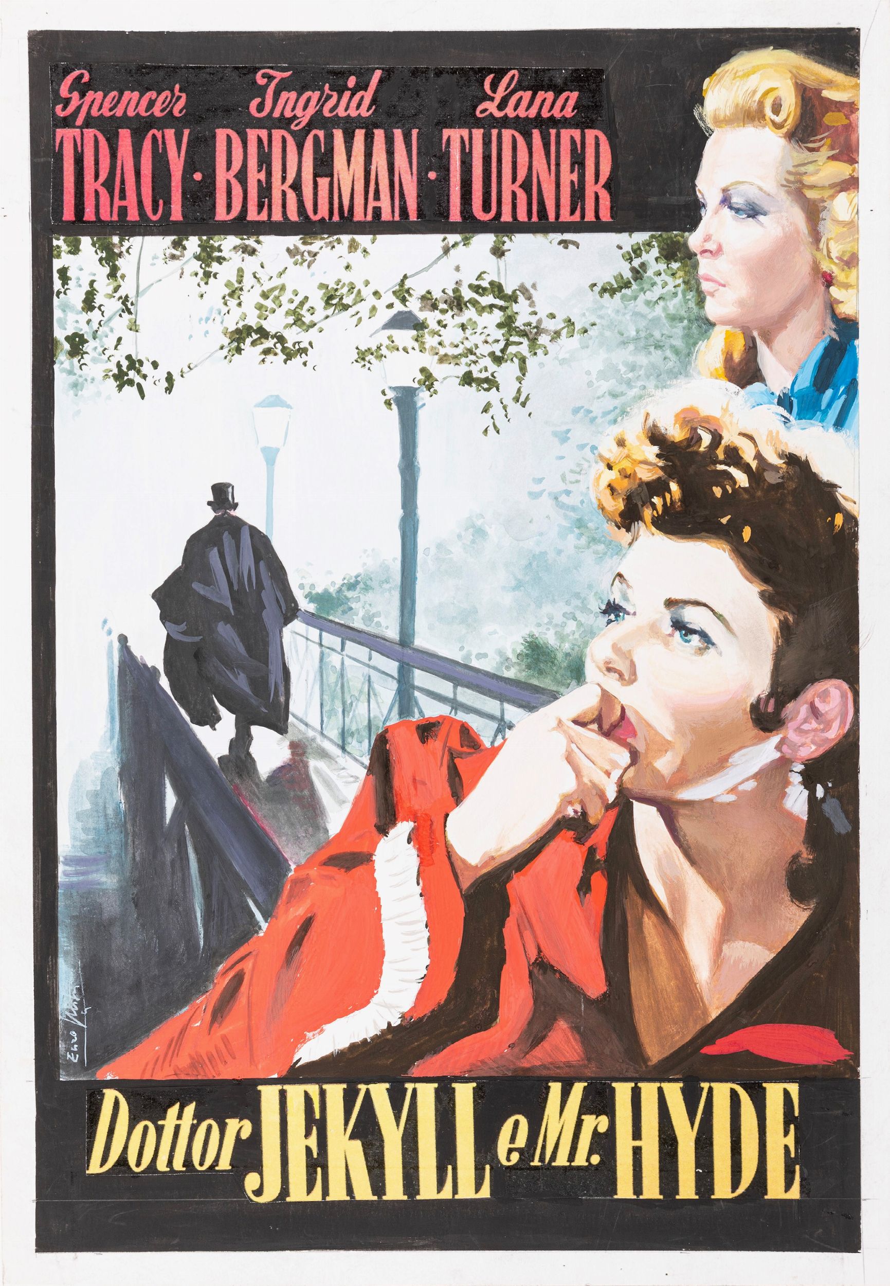 tempera su cartone, 34,5 x 50 cm 1941 Bozzetto preliminare realizzato da Enzo Nistri per la locandina ufficiale del film Il dottor Jekyll e Mr. Hyde, diretto da Victor Fleming con Spencer Tracy, Lana Turner e Ingrid Bergman nel 1941. Firmato.
