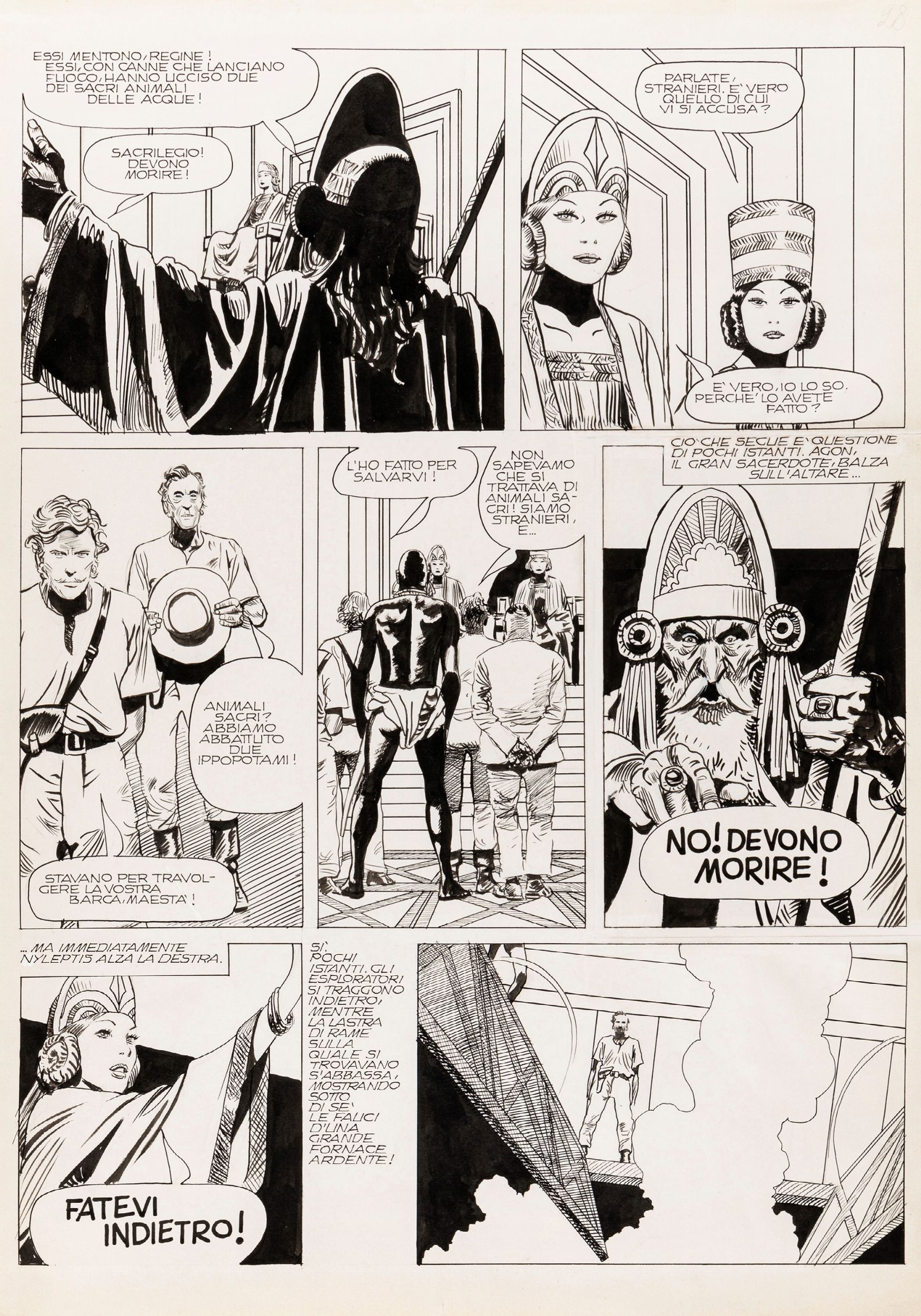 1980 Tavola originale realizzata da Micheluzzi per La città nascosta, pag. 28 pubblicata per la prima volta sul Messaggero dei Ragazzi n. 4 nel 1980. Lievi pieghe al margine superiore.