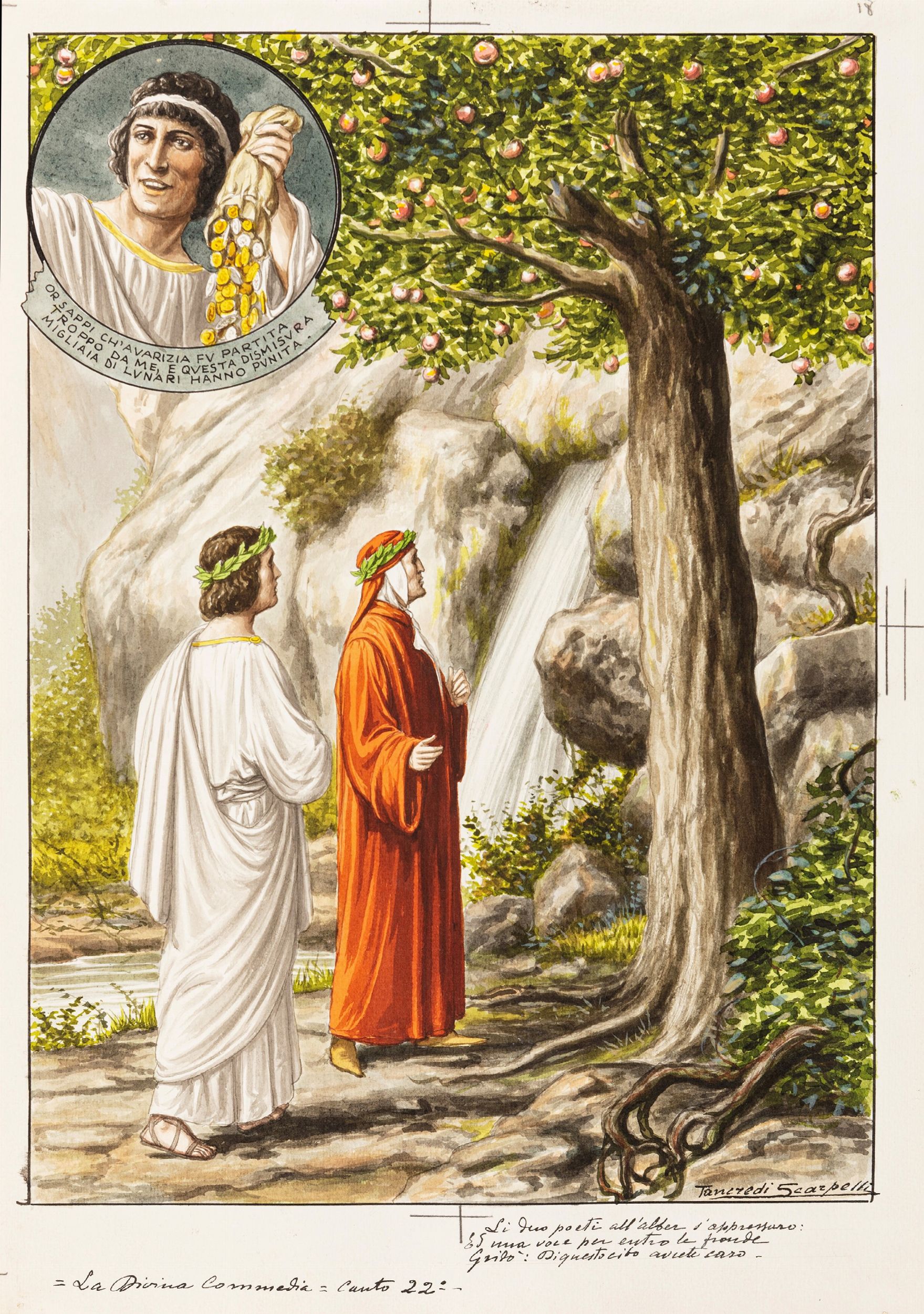 1908 Illustrazione originale realizzata da Scarpelli per La Divina Commedia, pubblicata a pagina intera nel canto 22° del Purgatorio da Nerbini nel 1908. Firmata.