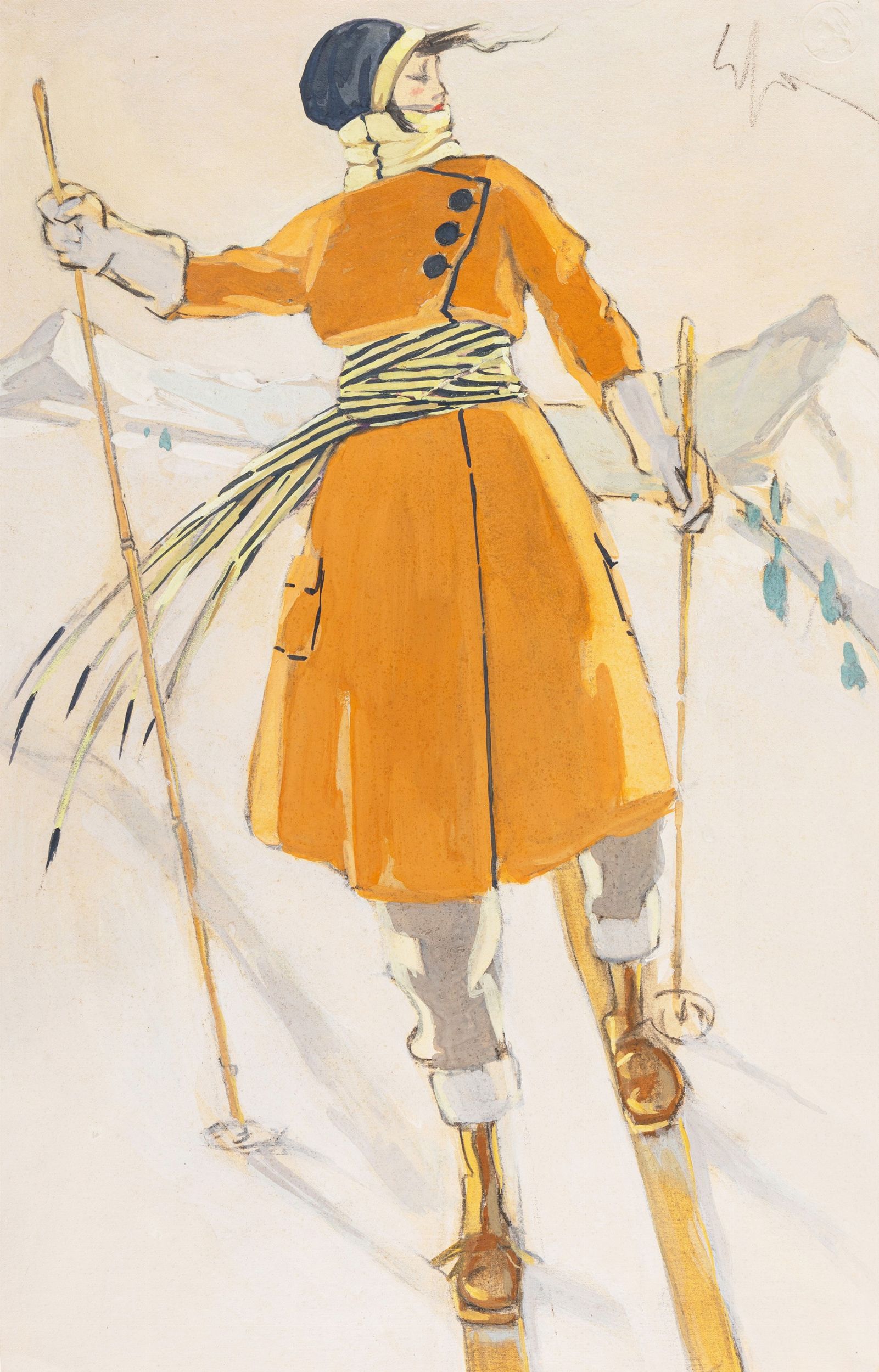 Enrico Sacchetti : La sciatrice  - Asta Fumetti: Tavole e Illustrazioni Originali - Associazione Nazionale - Case d'Asta italiane