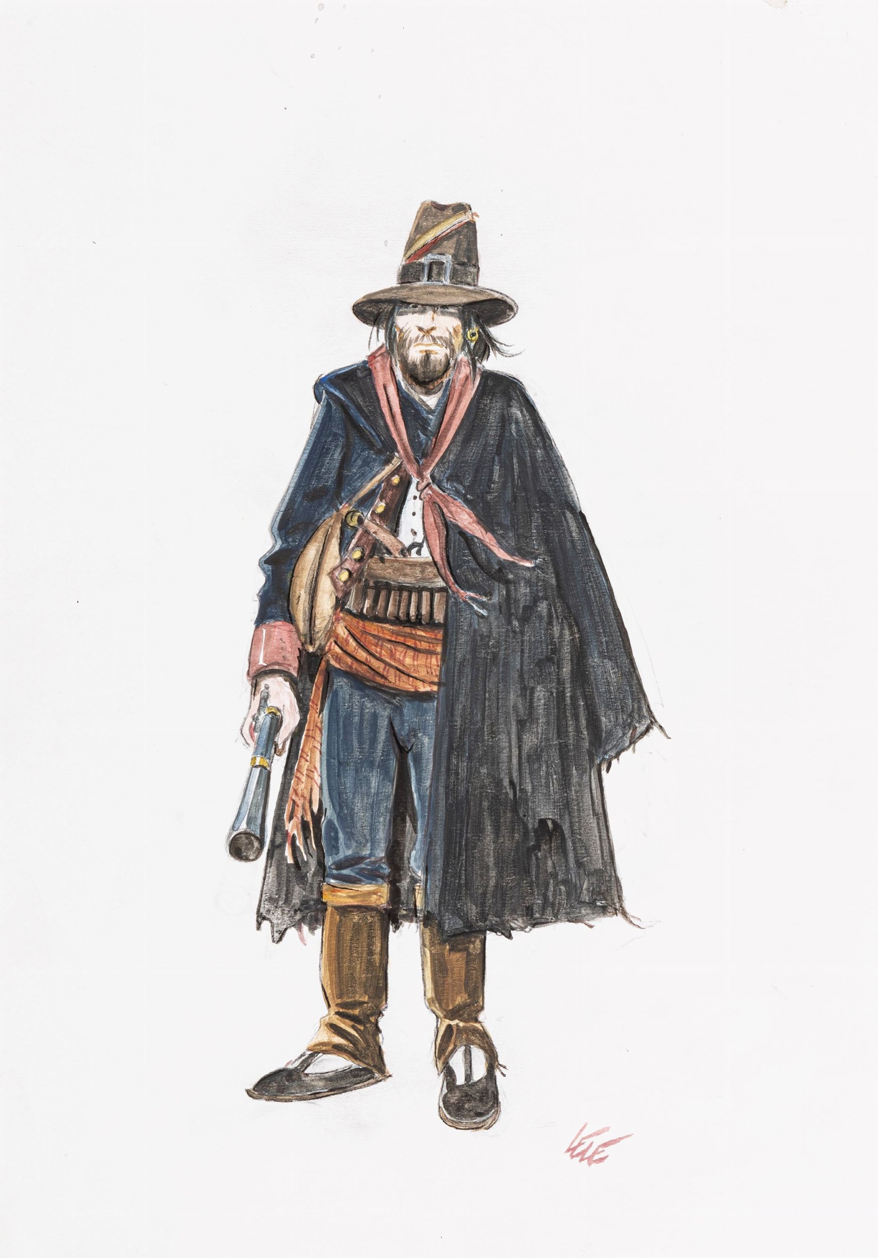 matita, acquerello e tempera su cartoncino, 25,5 x 36 cm 2016 Originale di copertina realizzato da Vianello per il volume L'anello di zinco, romanzo storico ambientato nel Regno delle Due Sicilie nel periodo del brigantaggio postunitario, edito dalle Edizioni Segni d'Autore nel 2016. Firmato.