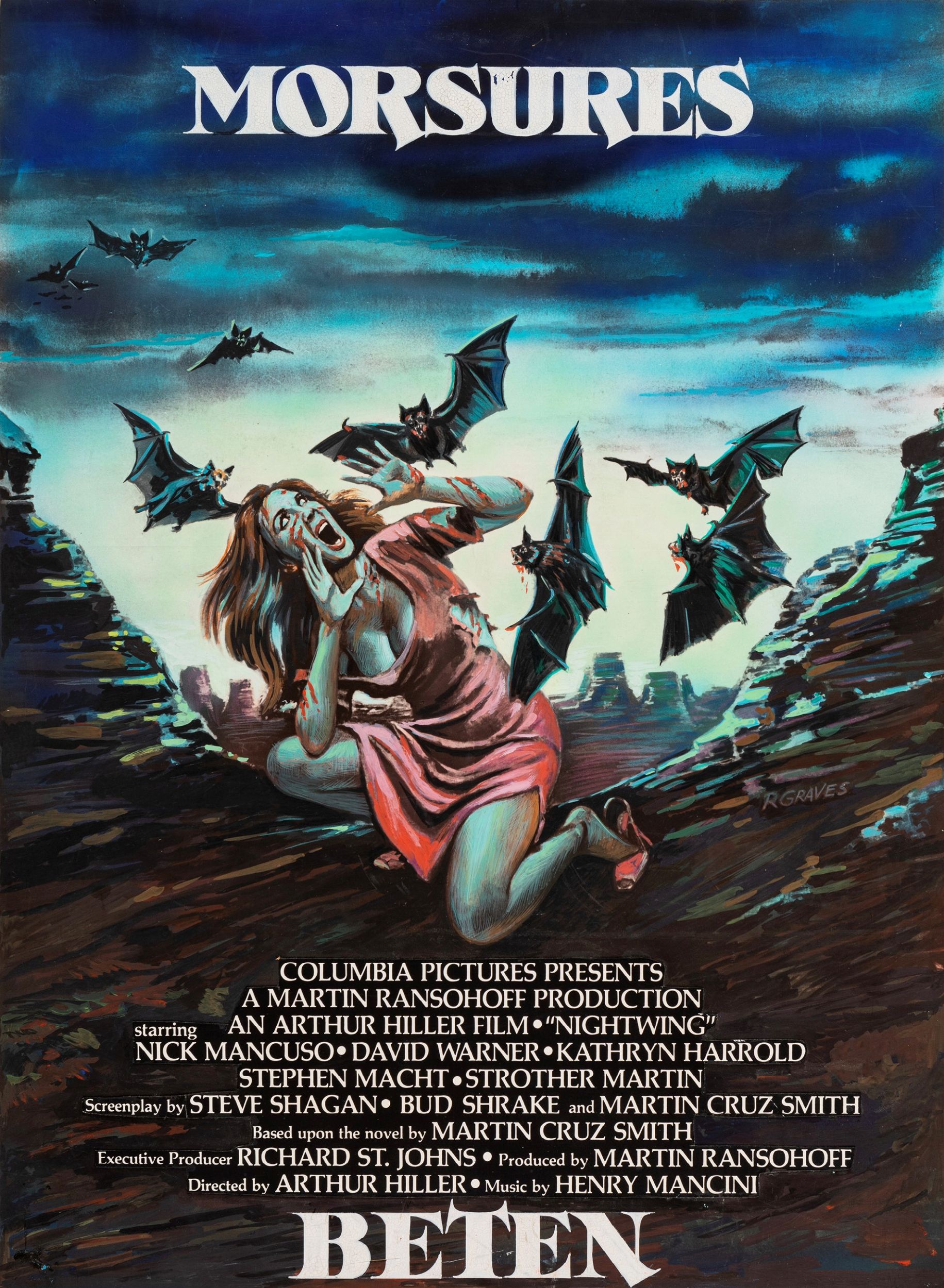1979 Bozzetto originale realizzato da Graves per la locandina ufficiale del film Le ali della notte, diretto da Arthur Hiller con Nick Mancuso, David Warner e Kathryn Harrold nel 1979. Firmato.