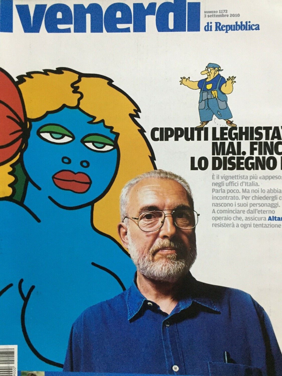 2010 Illustrazione originale realizzata da Altan e pubblicata sulle pagine de Il Venerd́ di Repubblica n. 1172 del 3 Settembre 2010. Firmata e dedicata.