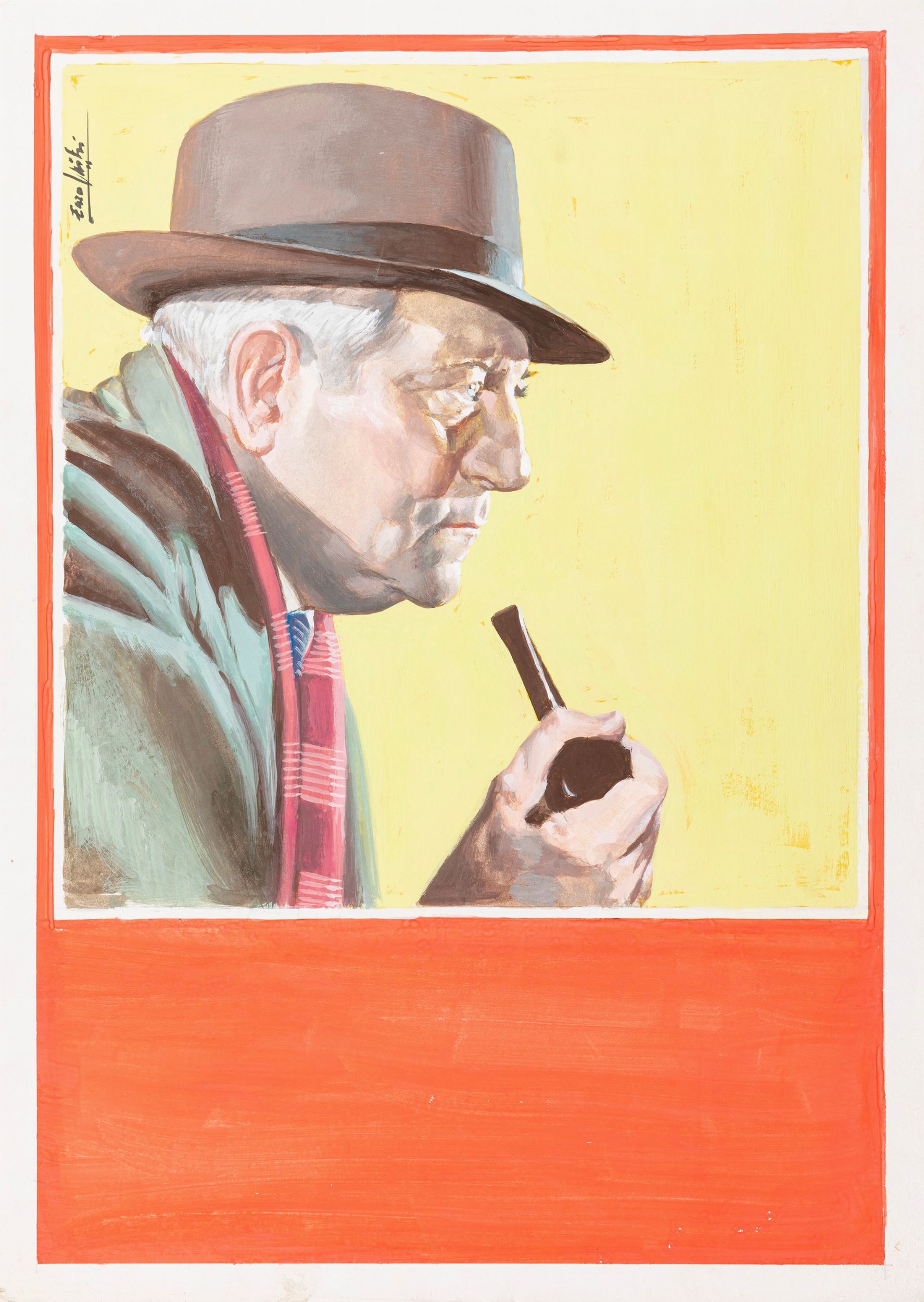 1959 Bozzetto preliminare realizzato da Enzo Nistri per la locandina ufficiale del film Maigret e il caso Saint-Fiacre, diretto da Jean Delannoy, con Jean Gabin e Valentine Tessier nel 1959. Firmato.