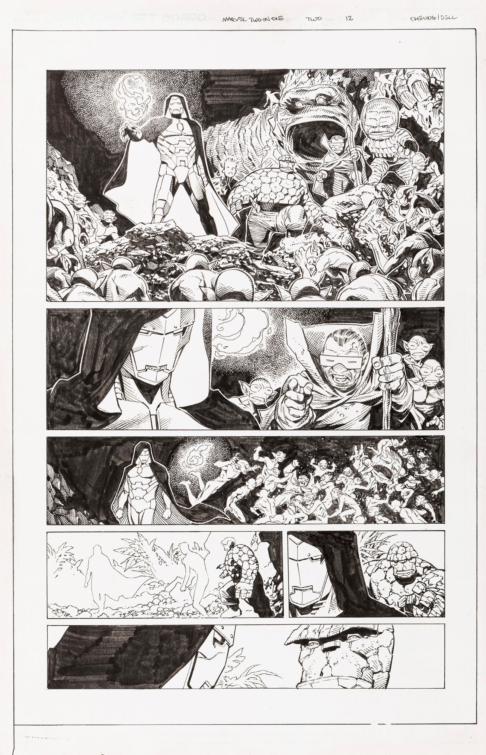 2018 Tavola originale realizzata da Cheung per la miniserie Marvel 2 In One n. 2, edita a pag. 12 dalla Marvel nel 2018.