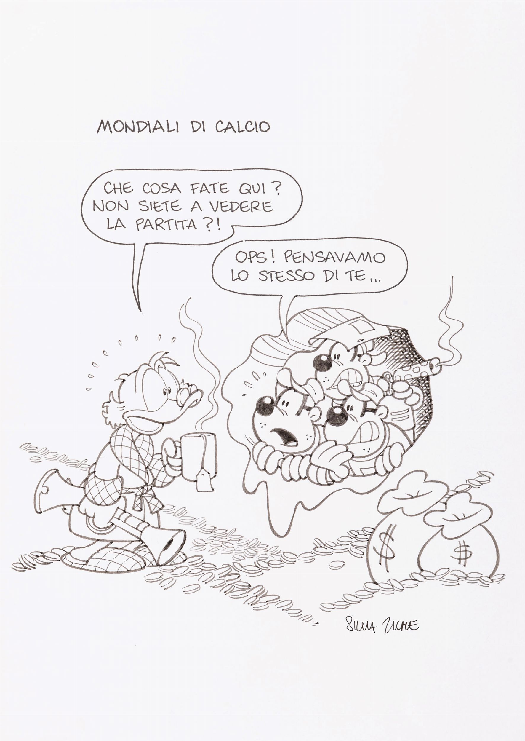 Silvia Ziche : Mondiali di calcio  - Asta Fumetti: Tavole e Illustrazioni Originali - Associazione Nazionale - Case d'Asta italiane