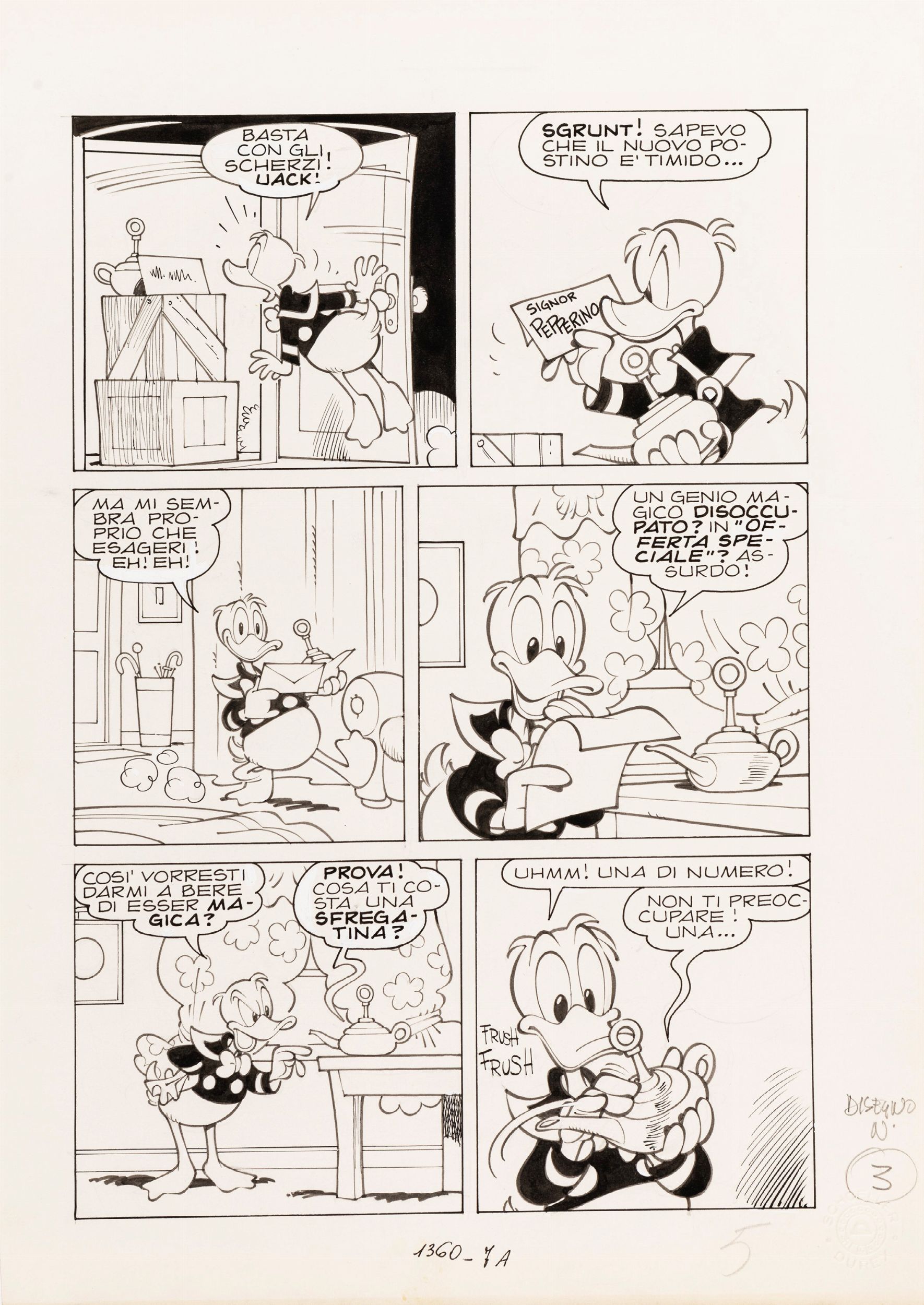 1981 Tavola originale realizzata da Cavazzano per Paperino e il genio maldestro, edita su Topolino n. 1360 a pag. 5 nel Dicembre 1981.