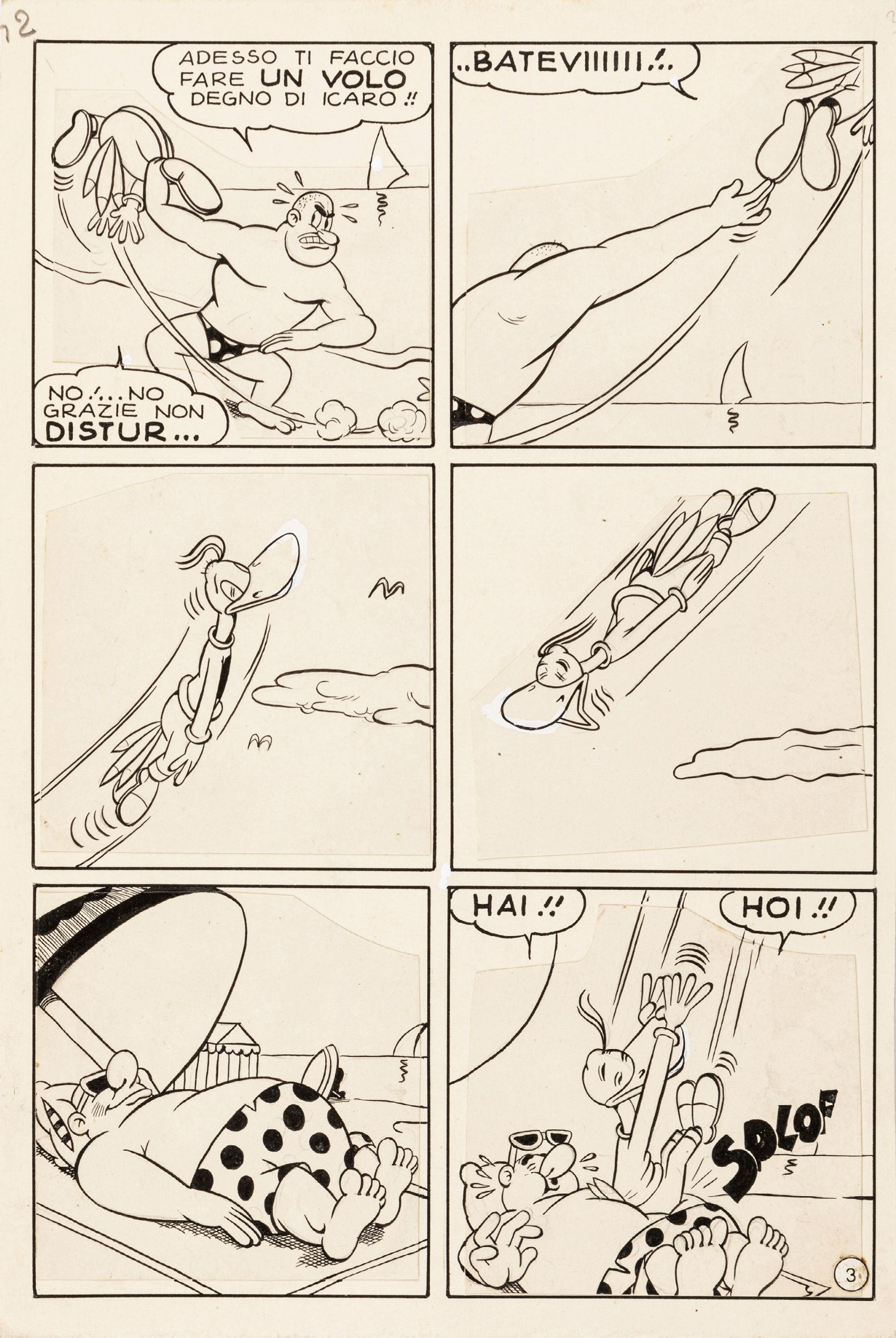 1952 Tavola originale realizzata da Bottaro nel 1952. In seguito alla richiesta dell'editore Bianconi di creare nuovi personaggi Bottaro decise di dare vita a Papy Papero.