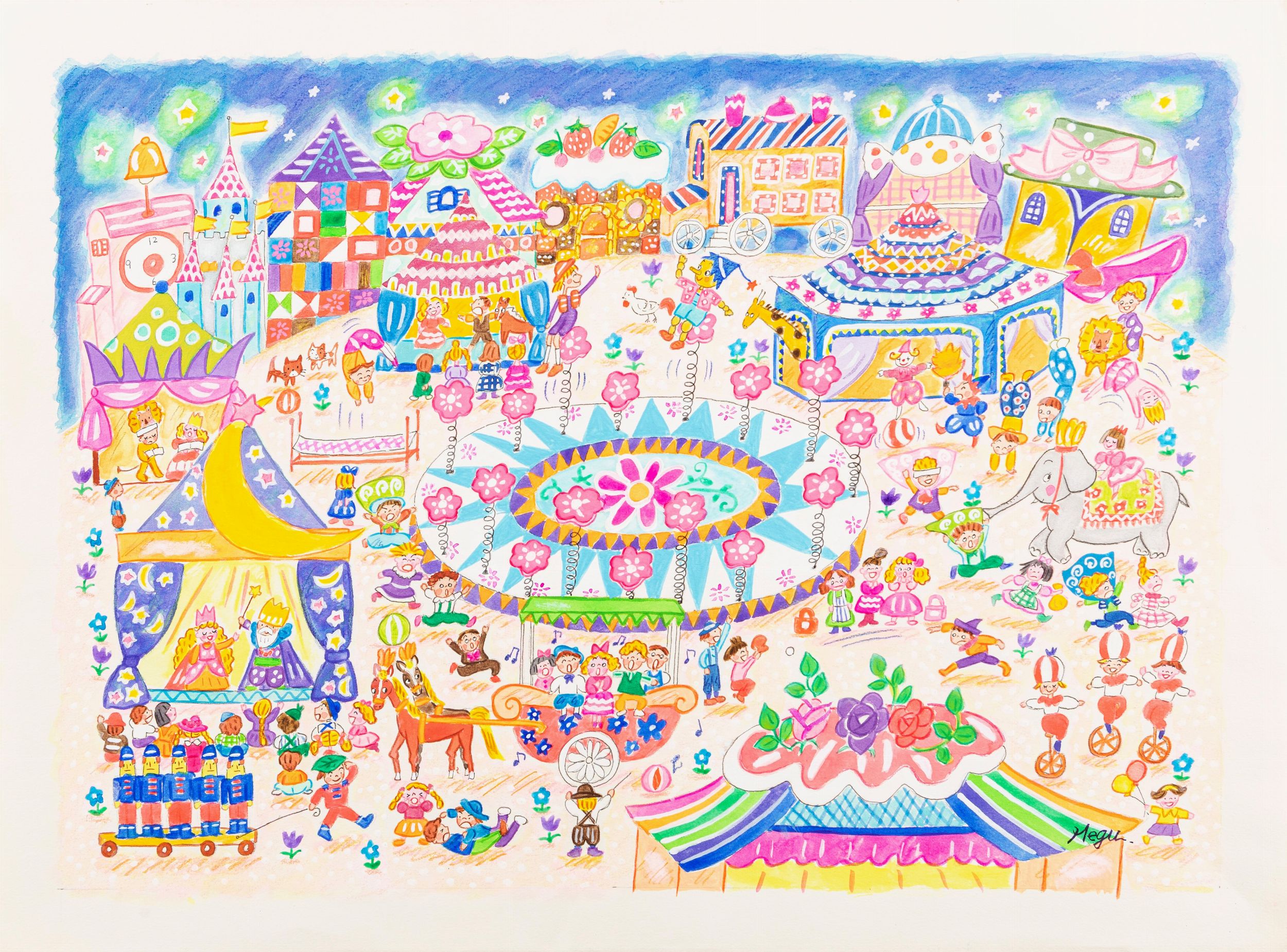 tecnica mista su cartoncino, 48 x 36 cm 1991 Illustrazione originale realizzata dalla giapponese Megumi in occasione della mostra Pinocchio dal mondo, tenutasi a Padova nel 1991 pubblicata sull´omonimo catalogo a pag. 88 dalla Editoriale Programma nel 1991. Firmata.