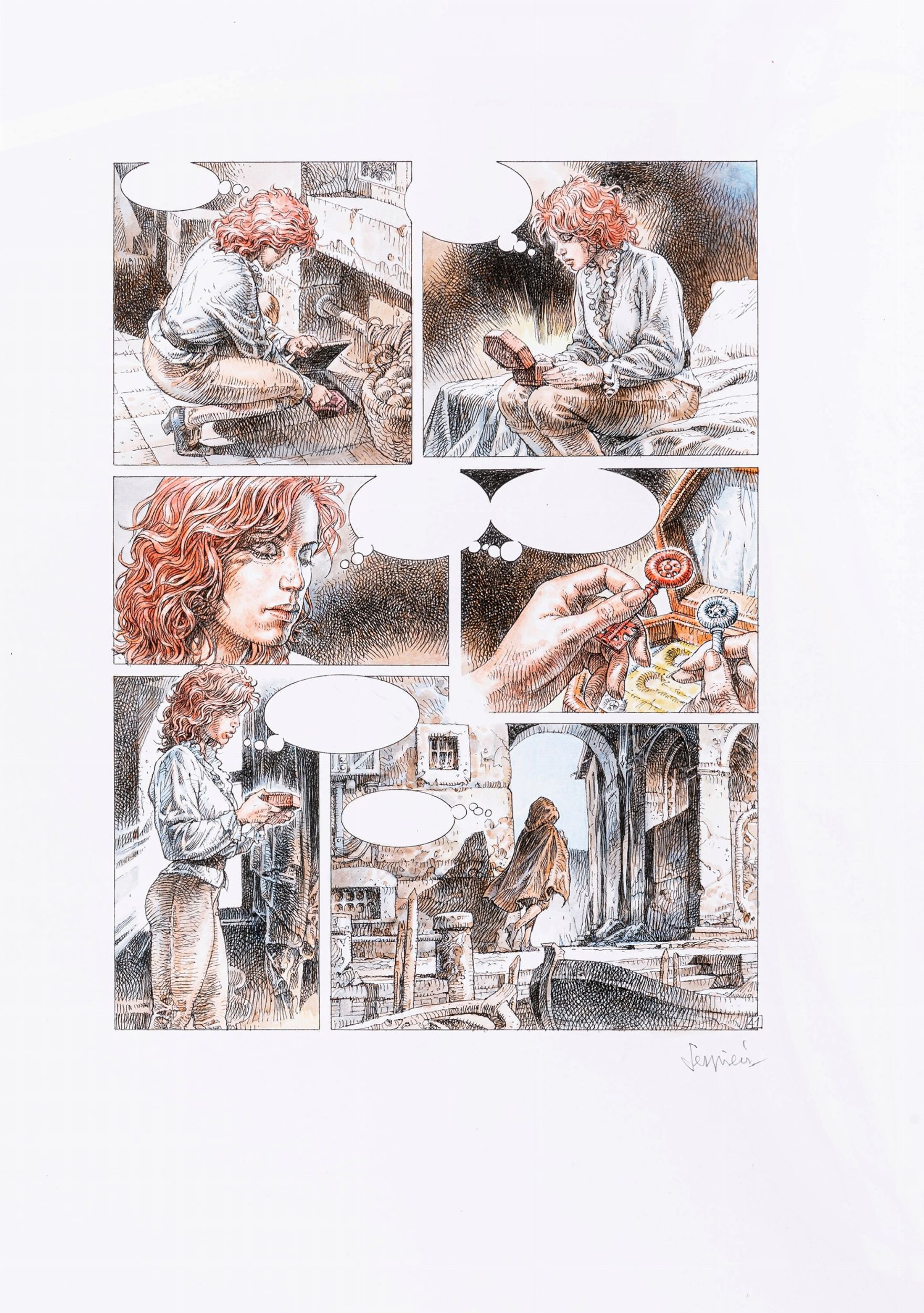 acquerello su fotocopia, 30 x 42 cm 2007 Definitivo a colori realizzato da Serpieri per il primo volume di Saria Le tre chiavi, edita a pag. 41 dalla casa editrice francese Delcourt nel 2012. L´opera usć per la prima volta nel 2007 in Francia per l´editore Laffont con il titolo di Les Enfers. Firmato.