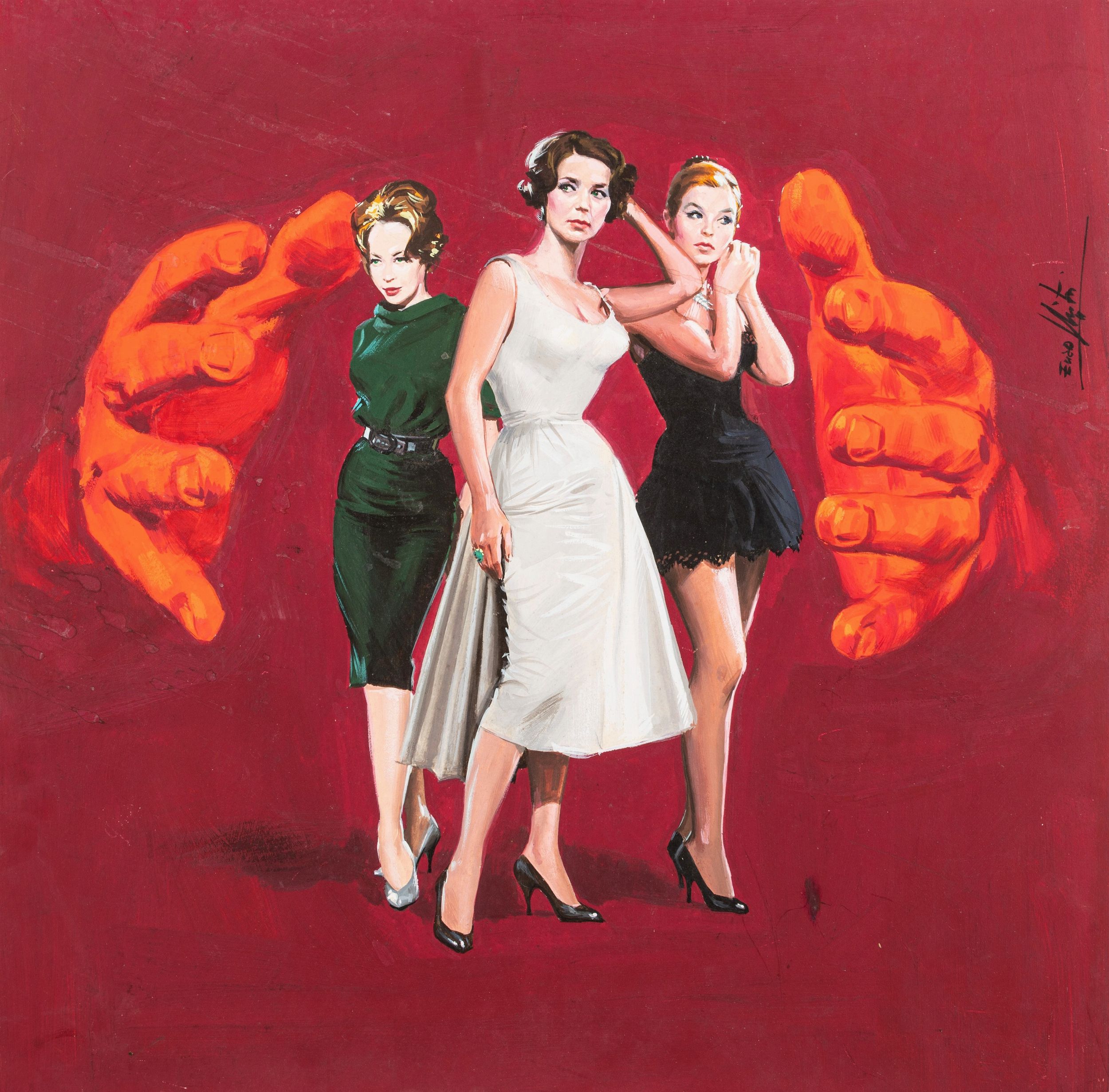 1961 Bozzetto originale realizzato da Enzo Nistri per la locandina ufficiale del film Sensi inquieti, diretto da Stellio Lorenzi con Emmanuelle Riva, Alexandra Stewart e Marina Vlady nel 1961. Firmato.