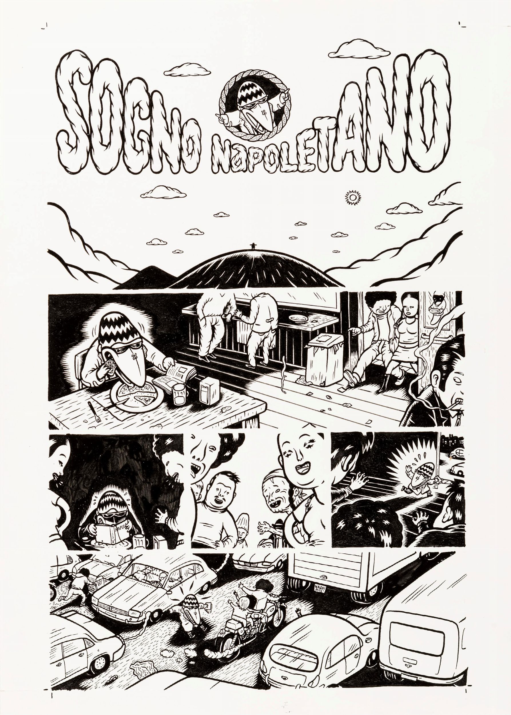 2017 Coppia di tavole originali realizzate da Squaz per Sogno napoletano, storia pubblicata per la prima volta sulle pagine de La Repubblica XL n. 20 nel 2007.