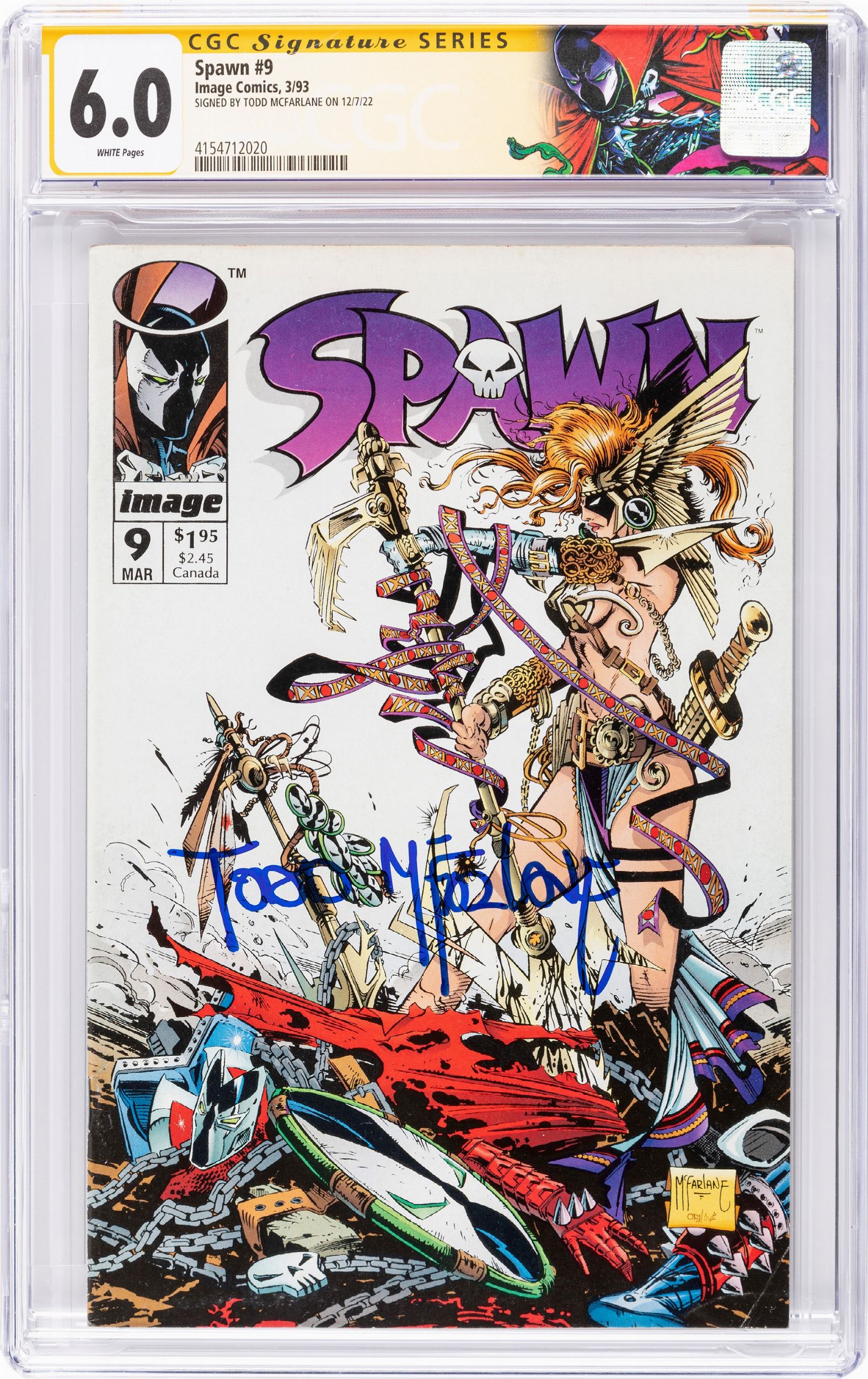 1993 Comic book certificato dalla CGC con un grading 6.0 (CGC Cert # 4154712020), case sigillato e in ottime condizioni. CGC Comments: 1st appearance Medieval Spawn & Angela. SIGNED BY TODD MCFARLANE ON 12/7/22.