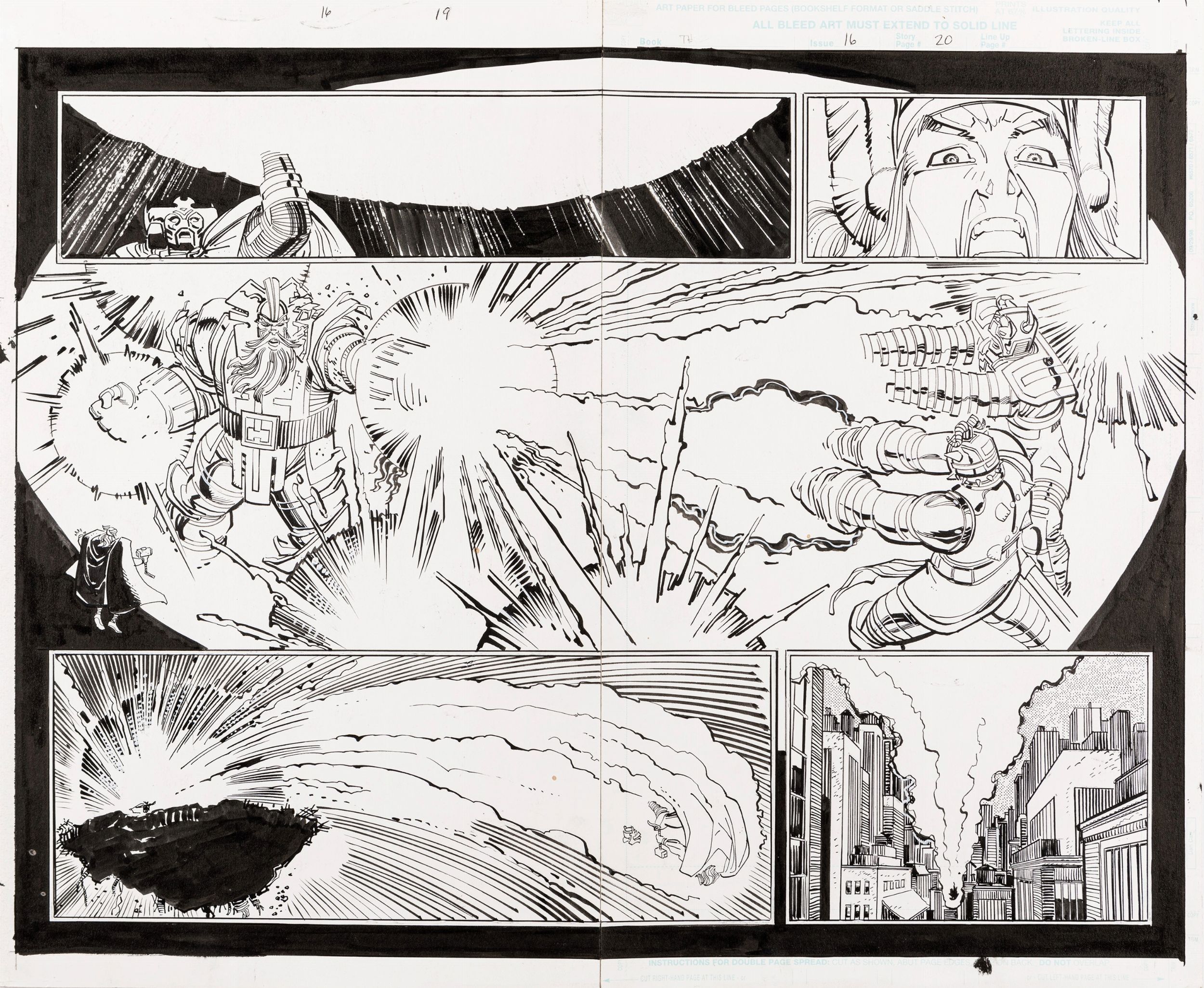 1999 Doppia tavola originale realizzata da Romita Jr. per Revenge of the Enchanters, edita su Thor n. 16 alle pagg. 19 e 20 dalla Marvel nel 1999. Su due pannelli.