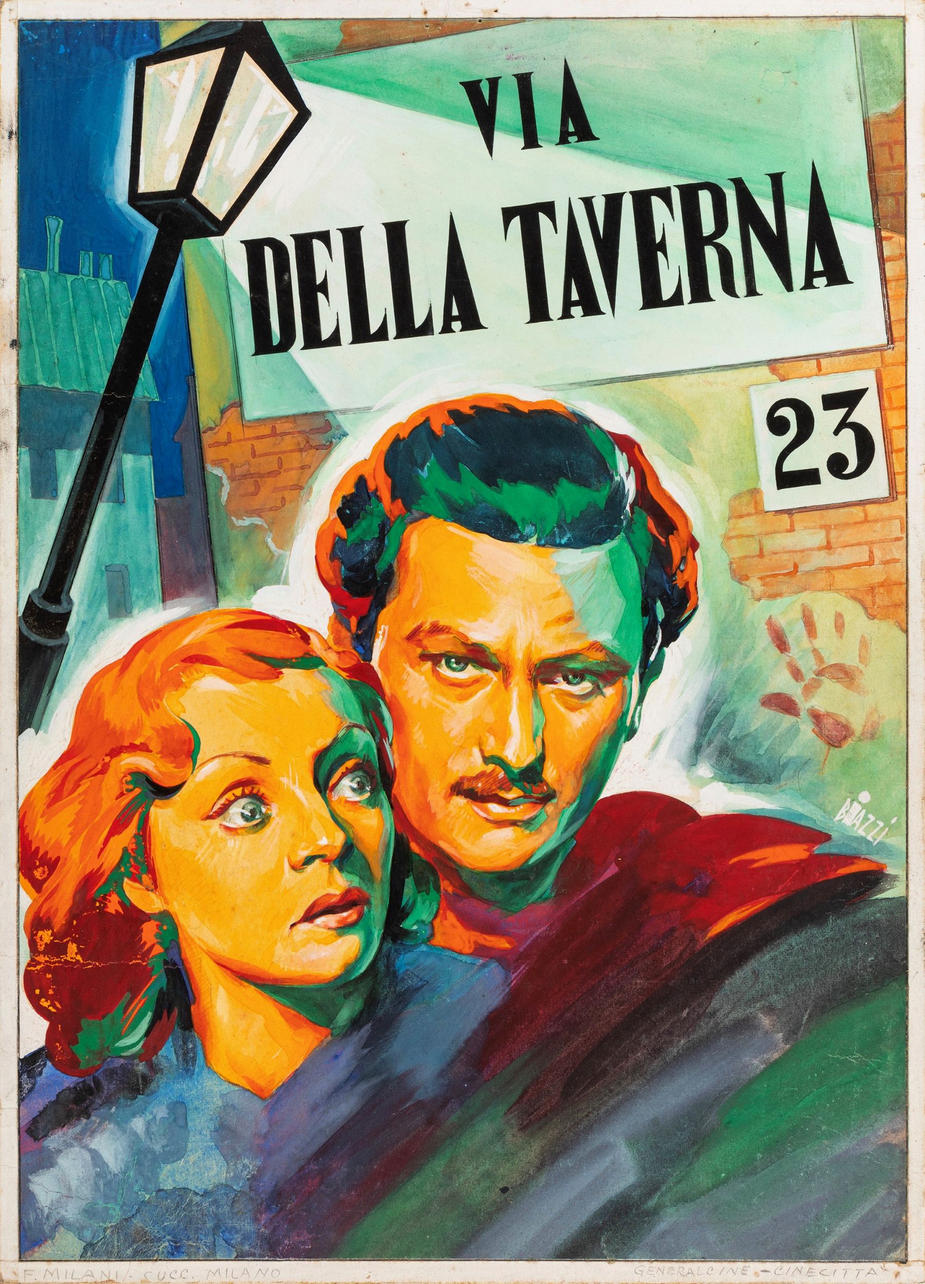 1937 Bozzetto originale realizzato da Biazzi per la locandina ufficiale del film Via della taverna 23, diretto da Jack Raymond con Anton Walbrook, Ruth Chatterton e René Ray nel 1937. Firmato.