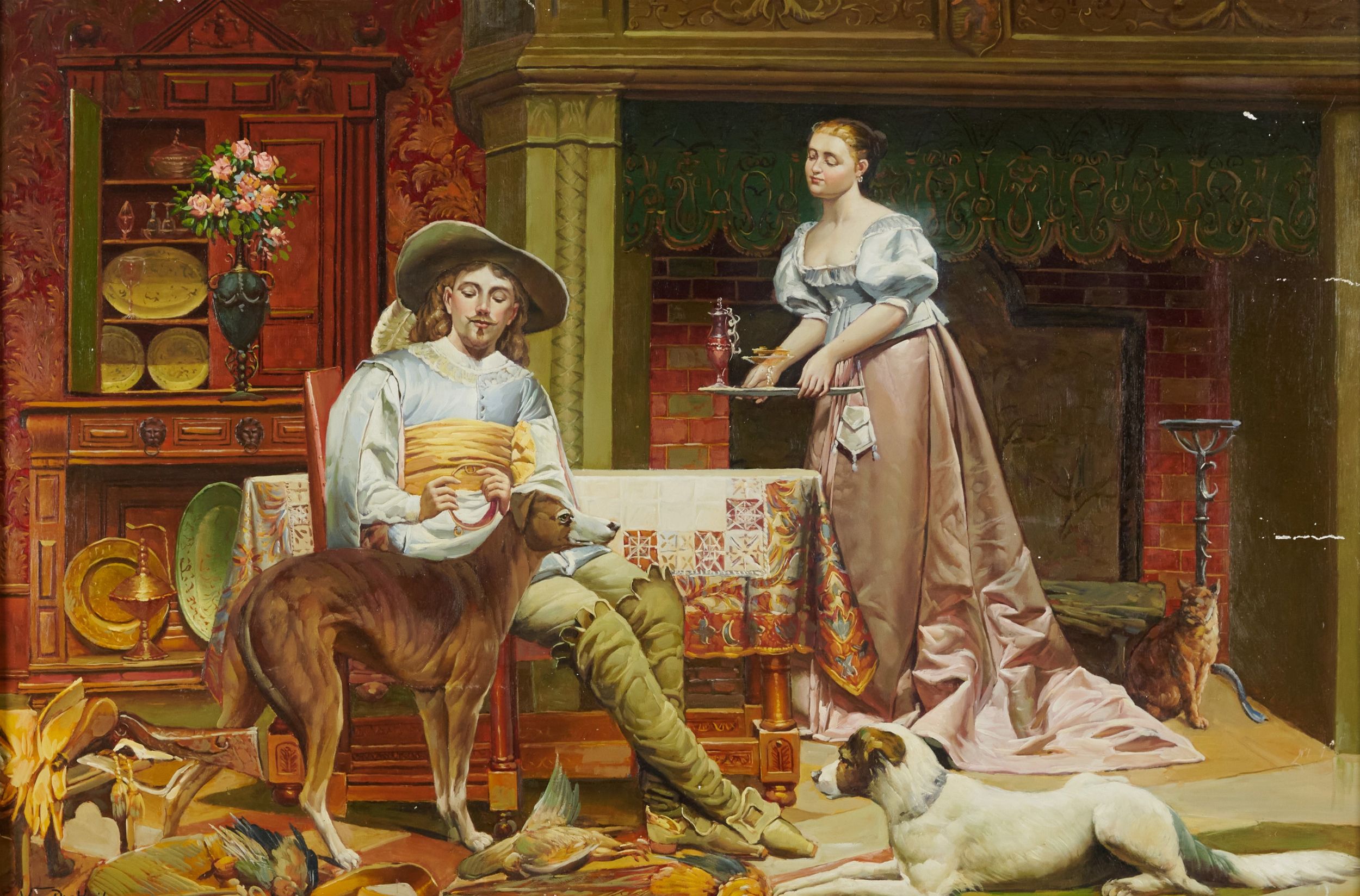 Interno con figure e cani