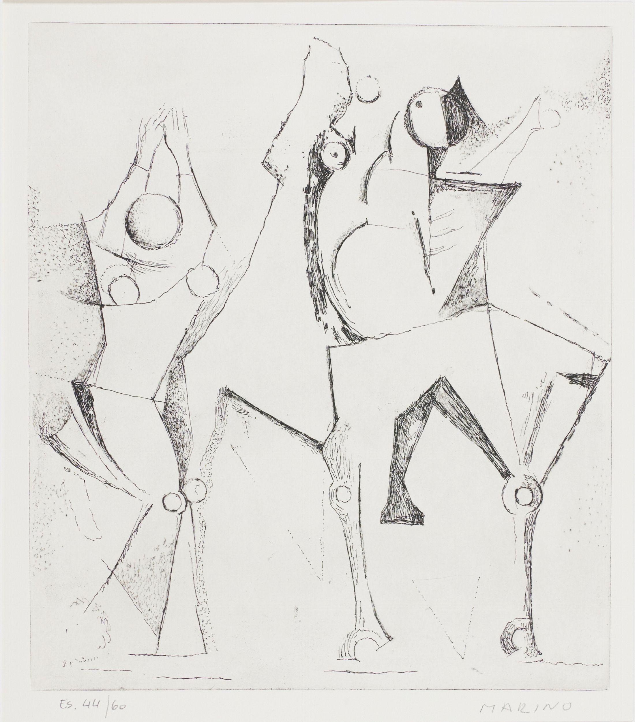 L'opera fa parte della cartella Marino Marini opera grafica, incisori italiani contemporanei, contenente 20 acqueforti e puntesecche incise dal 1959 al 1971, Luigi De Tullio Editore. Le incisioni impresse su Vélin Cuve BFK Rives Velin D'Arches e carta Tino Magnani, sono custodite singolarmente in 20 passe-partout di cm. 74x54.