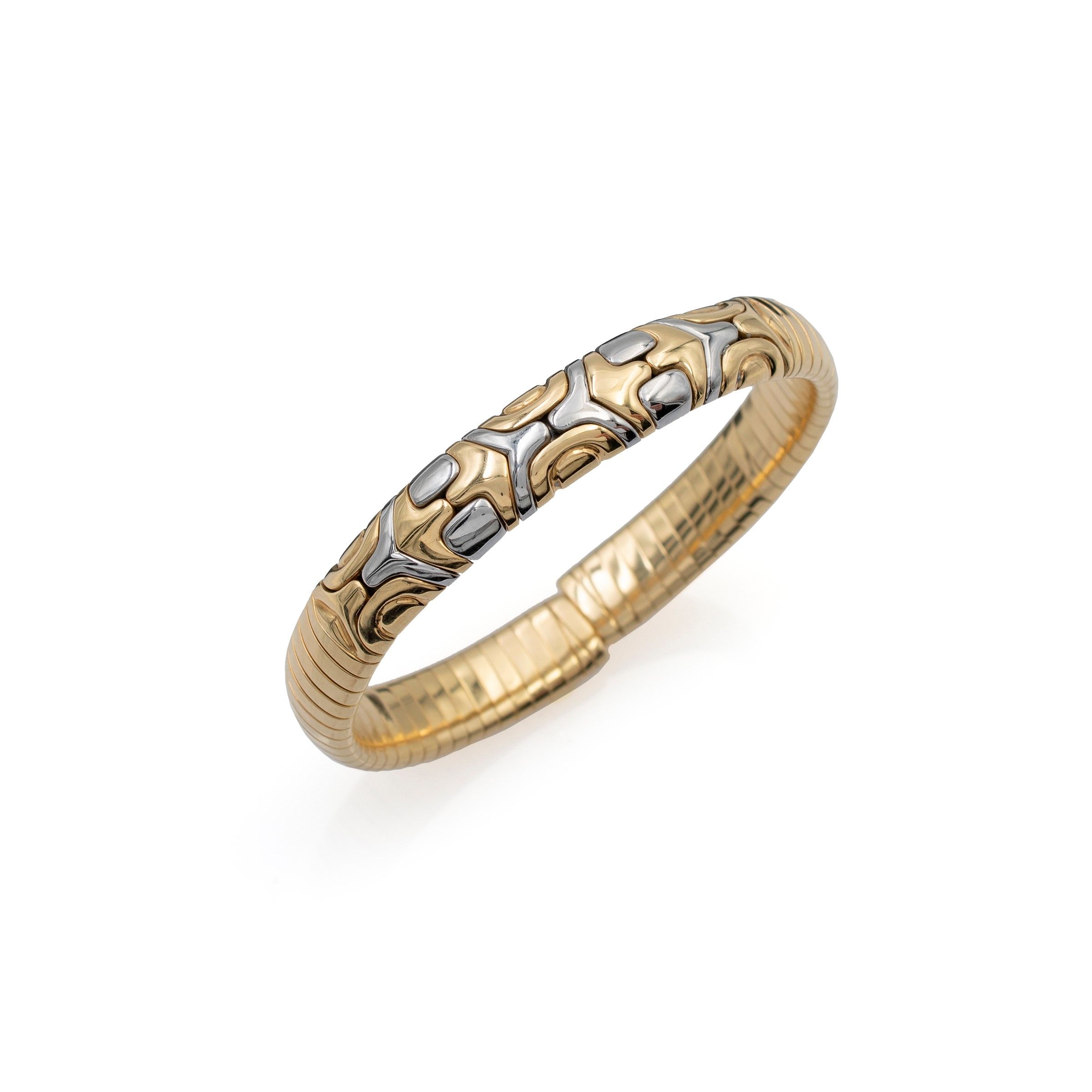 firmato, anni 90 circa in oro giallo 18kt nella parte superiore elementi in oro giallo e acciaio, diametro 6 cm.