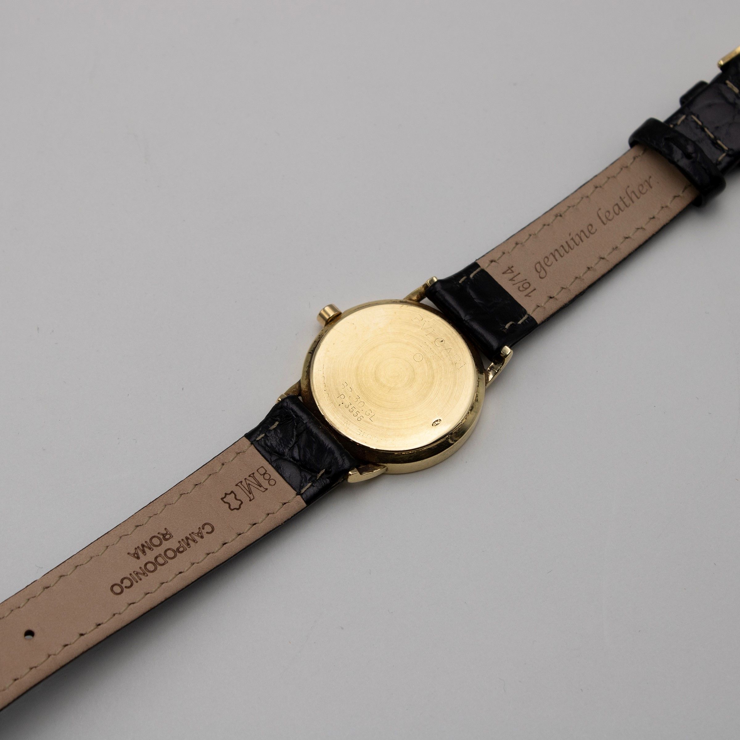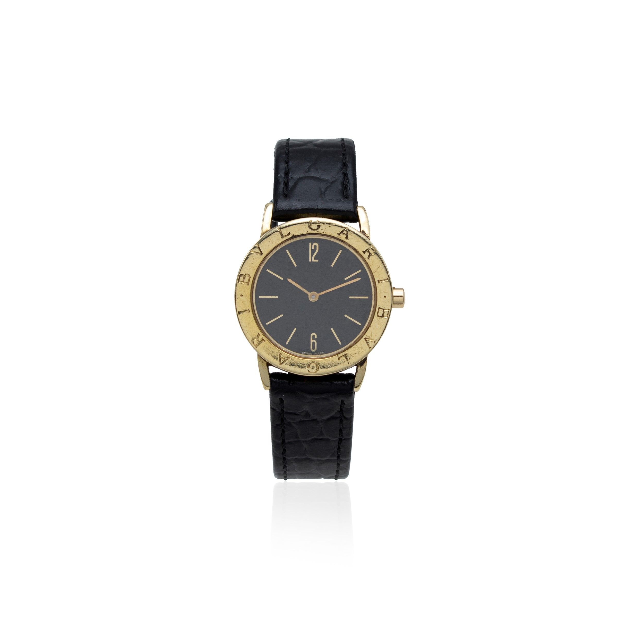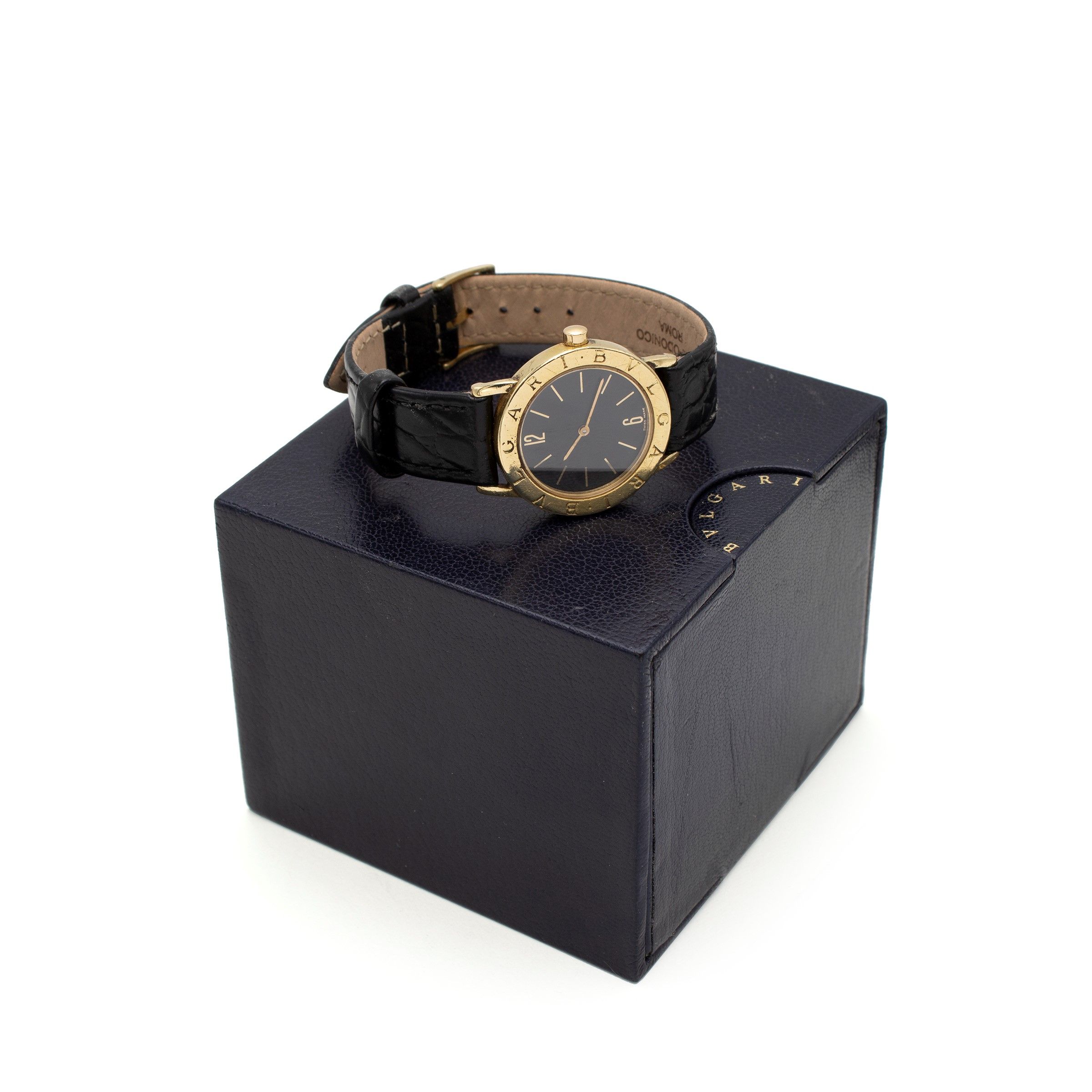 anni 90 circa in oro giallo 18kt, ref. BB30GL, cassa 30 mm. quadrante nero con indici e numeri arabi, segni di usura, vetro zaffiro, segni di usura, movimento al quarzo, cinturino in pelle con fibbia in metallo dorato, cassa, quadrante e movimento firmati, completo di scatola