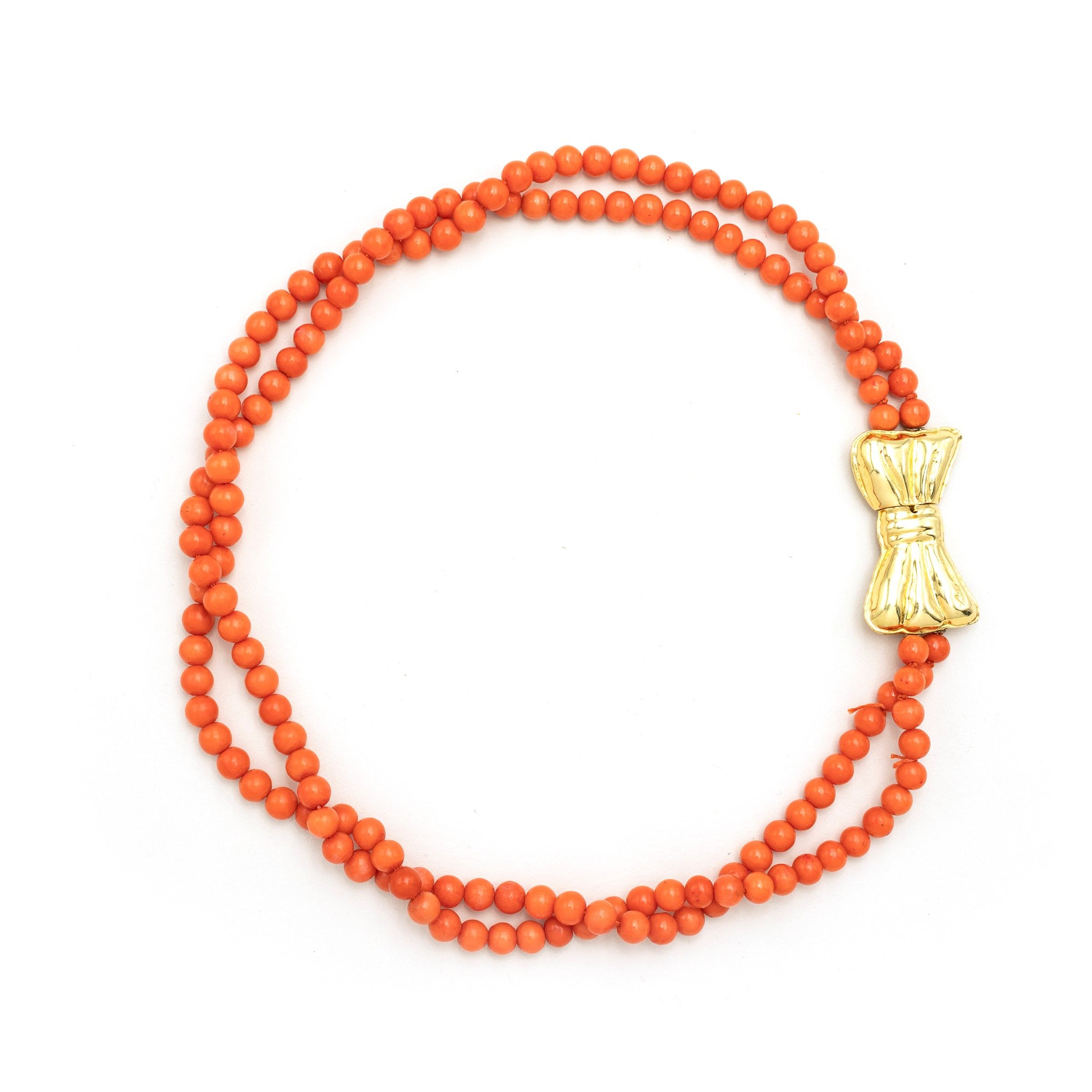 sfere 7 mm. riuniti da chiusura a fiocco in oro giallo 18kt, lunghezza 48 cm.