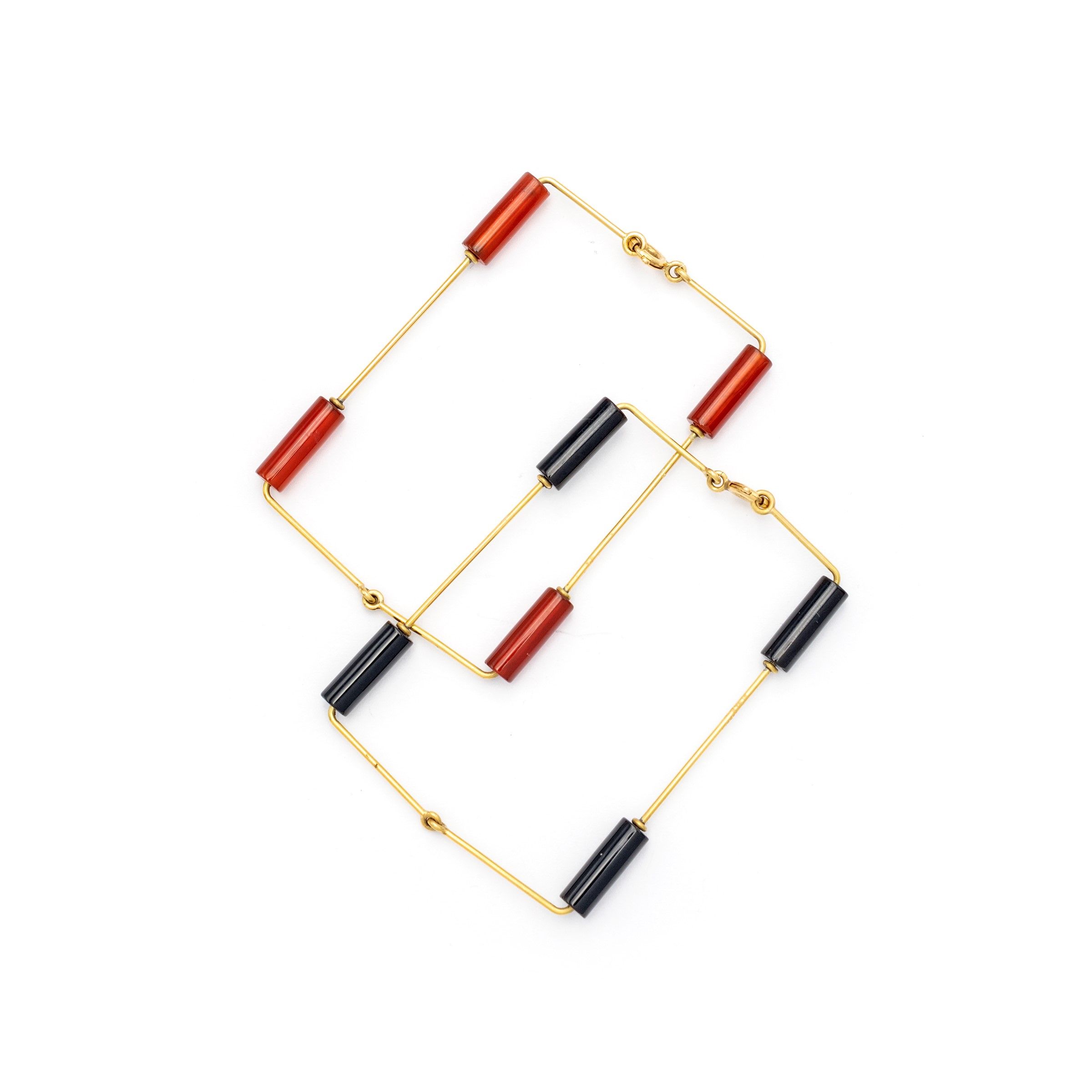 onice nero e corniola a sezioni cilindriche, misure 6,5x4,5 cm.