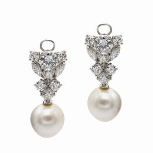 Orecchini pendenti in oro bianco 18kt diamanti e perle South Sea