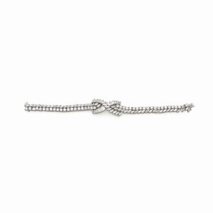 peso 86 gr. firmato e numerato, bolli Francia, anni 40/50 diamanti taglio brillante ct 0,80 circa alternati da [..]