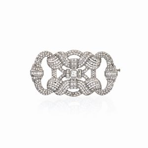 peso 93 gr. anni 50/60 maglia intrecciata con chiusura a fibbia impreziosita da diamanti taglio brillante ct [..]