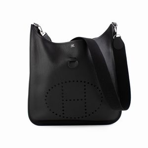 misure 35x23x13 cm. anno 1992 in pelle taurillon nera, finiture dorate, interno in pelle ad uno scomparto con [..]