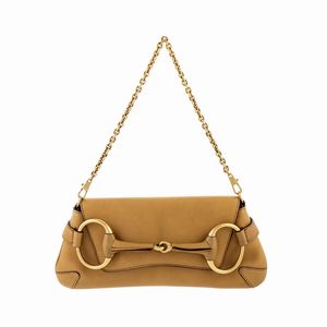 misure 37x20x14 cm. in pelle beige, finiture dorate, interno in tessuto ad uno scomparto con una tasca a zip, [..]