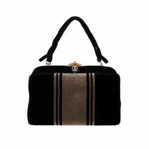 misure 22x13x8 cm. in velluto nero e beige, finiture dorate, interno in tessuto e pelle ad uno scomparto con [..]