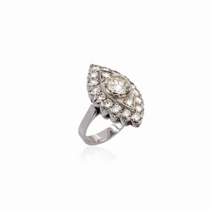 Anello a losanga in oro bianco 18kt e diamante taglio brillante