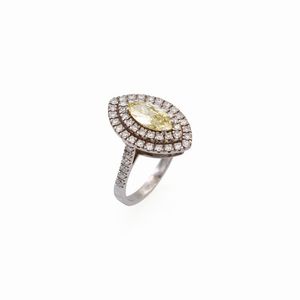 Anello in oro bianco 18kt con diamante naturale fancy yellow