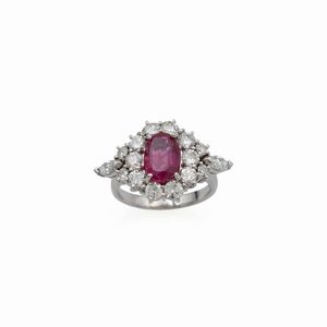 Anello in oro bianco 18kt rubino e diamanti