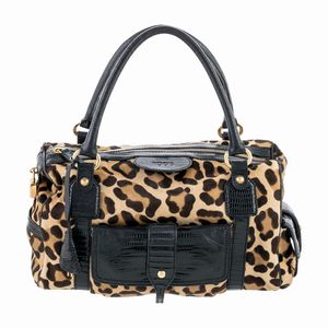 misure 32x20x13 cm. in pelle effetto cavallino e pelle nera, finiture dorate, interno in tessuto ad uno scomparto [..]