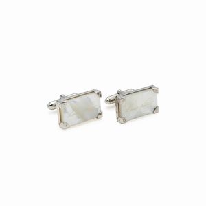 misure 2,2x1,8 cm. in metallo argentato e madreperla firmata