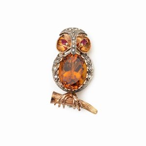 Spilla civetta in oro rosa 14kt e argento