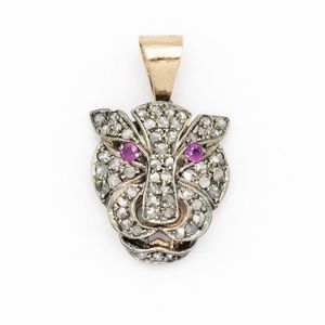 Pendente pantera in oro e argento con rose di diamante