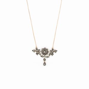 Antico pendente in argento e rose di diamante